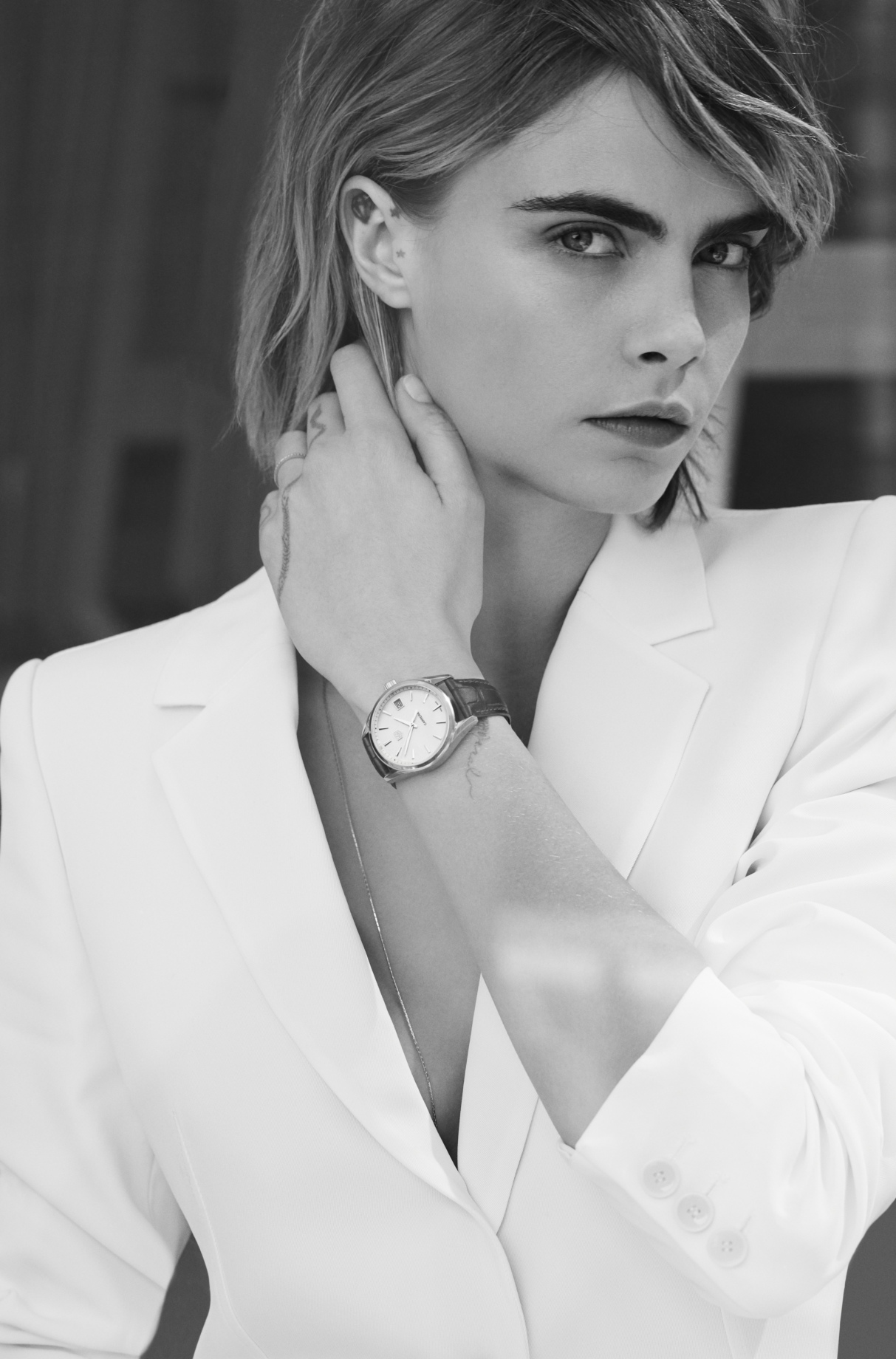如果你覺得深藍色錶面從來不會是自己挑選女錶的優先選項,那你必須緊盯以下卡拉配戴泰格豪雅Carrera Lady的照片15秒,有沒有被燒到?有沒有啊你說說!(激動敲桌)