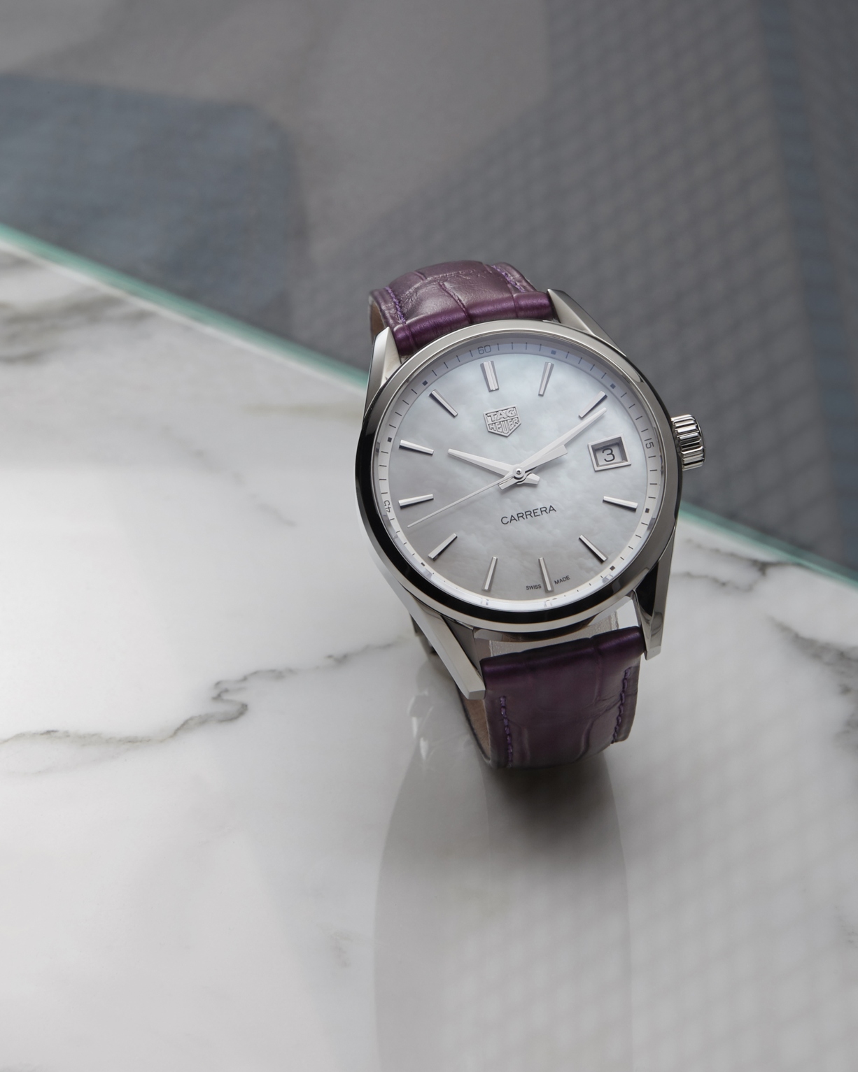 除了藍色,泰格豪雅也推出白色珍珠母貝、紫色、灰色和黑色的錶面可供挑選,這次發佈的新品中,更是針對36毫米錶殼的款式推出更多時髦的錶帶顏色。現在就讓我們一邊看著卡拉,一邊來想想,今天想要來條紫色、灰色或灰褐色的鱷魚皮錶帶,還是來條藍色小牛皮錶帶呢?
