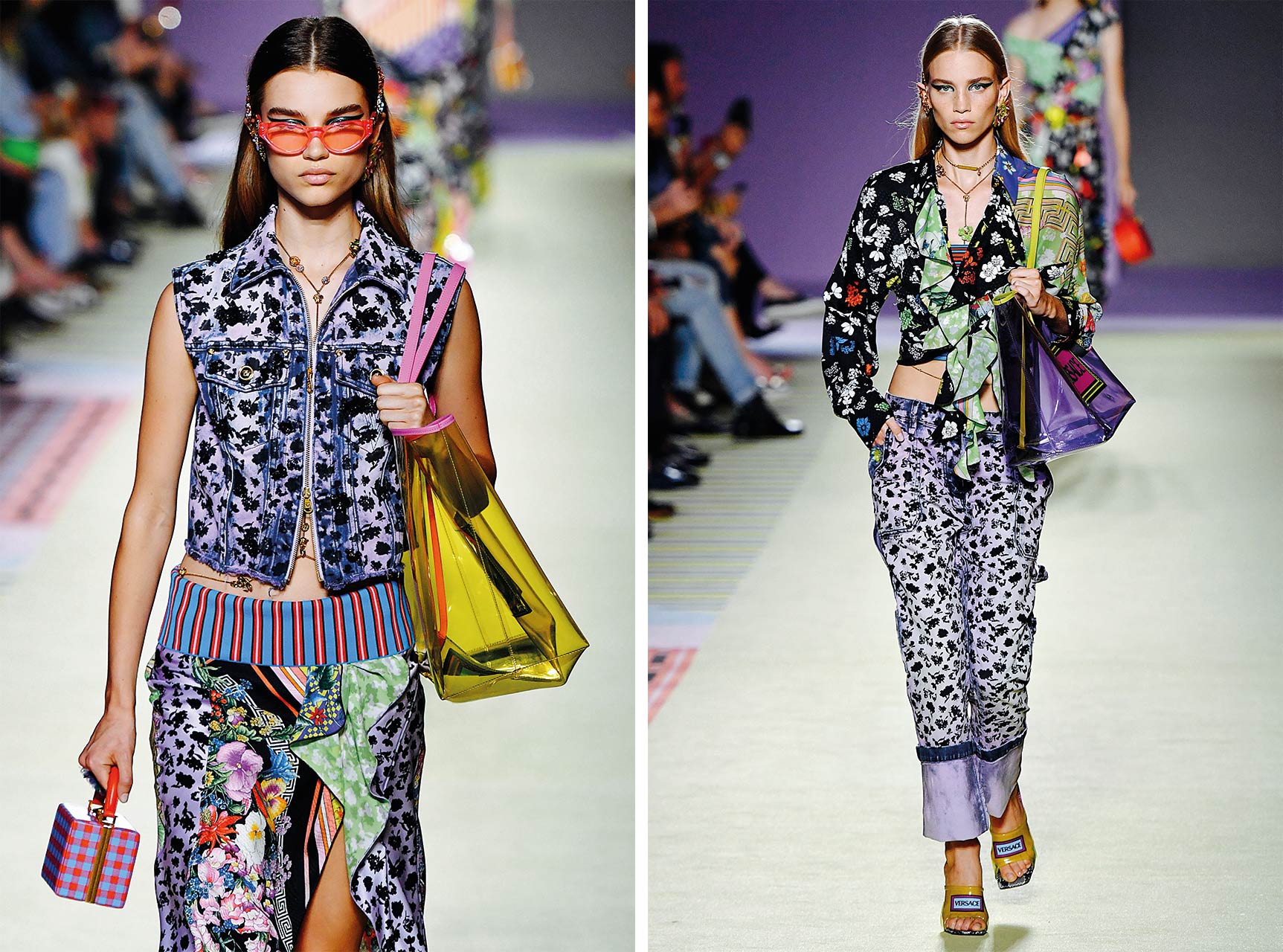↑Versace 每場大秀都少不了的九零年代元素,丹寧背心外套、反摺長褲交錯在其中。