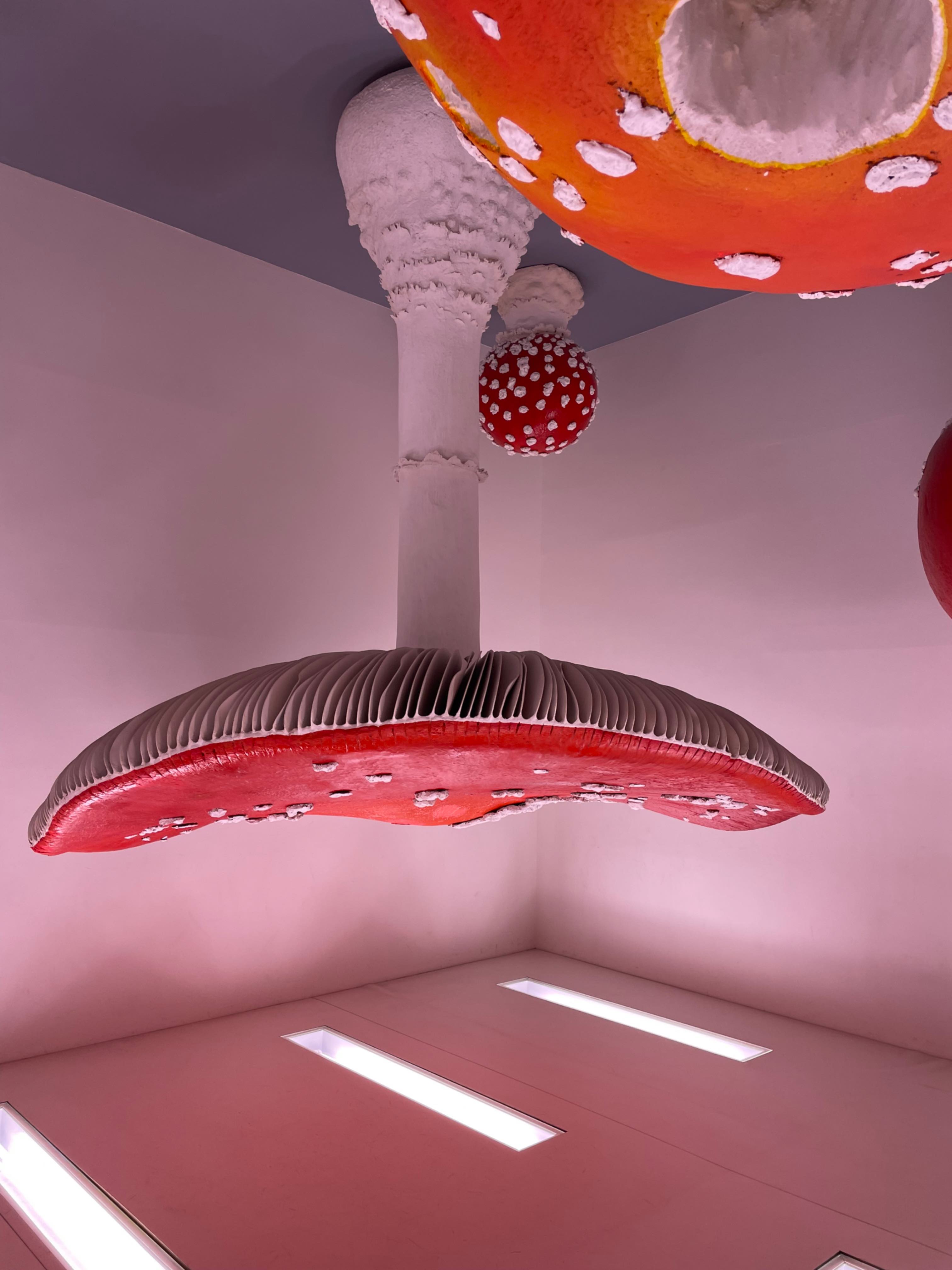 ↑在 Fondazione Prada 米蘭,德國藝術家 Carsten Höller 的裝置藝術 Upside Down Mushroom Room。