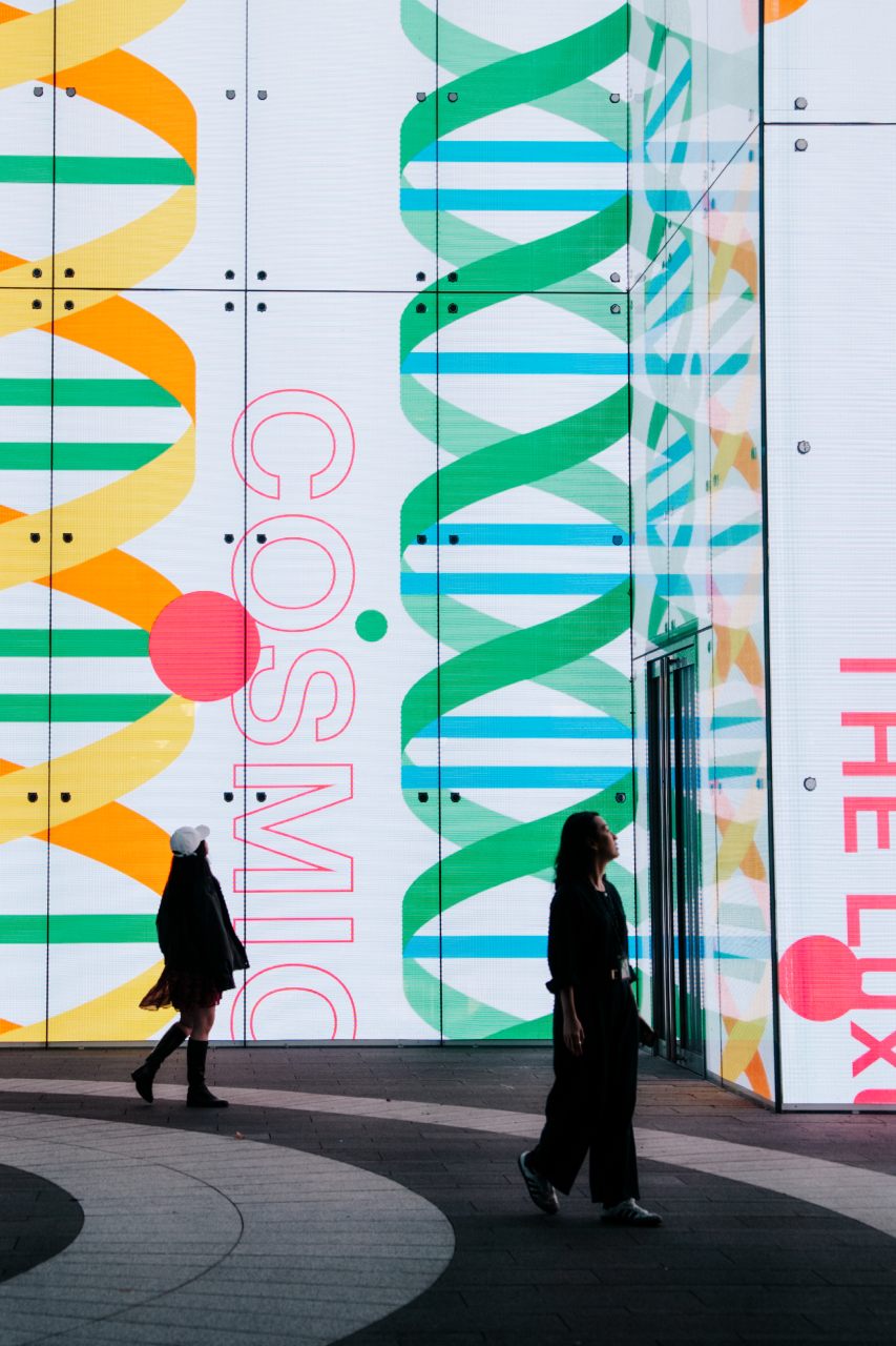 Taipei Lumitree 展開新的觀看方式,配合台北當代藝術館舉行的《宇宙寫生 — 豪華朗機工個展》,將這裡化作該展的獨家戶外衛星展場,重新詮釋人與萬物的流動關係。原本屬於美術館的影像敘事,直接延伸至街道,與之相互交融、對話,展覽也因而有了新的呼吸脈動。