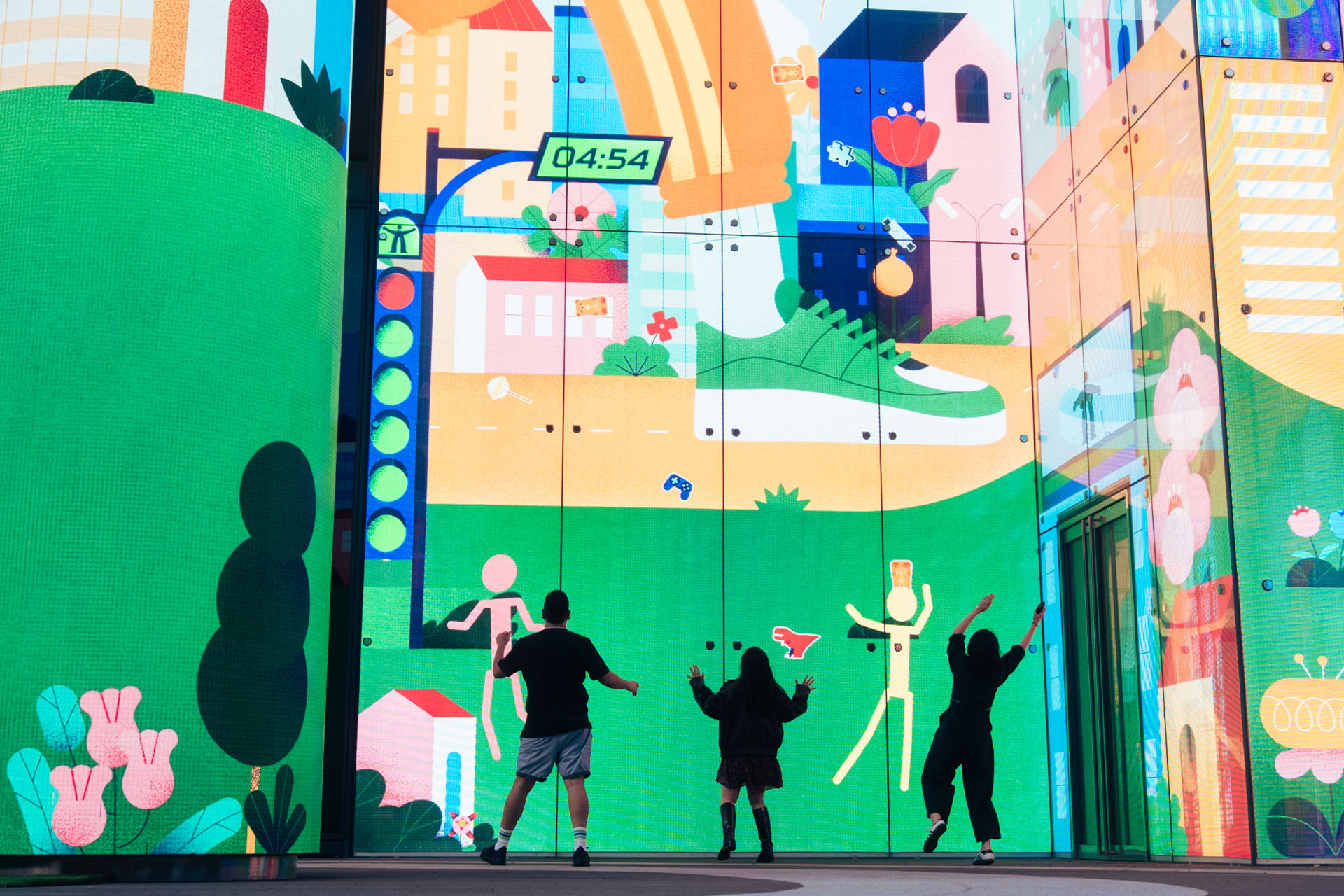原來影子可以這樣玩!Tiger Party × Wild Design 野人設計共同製作的公共互動作品《影子玩伴 Shadow Buddy》在此以升級版本登場。當你走進光廊,LED 牆面便會即時生成同步動作的火柴人影子,隨著你揮手或舞動。