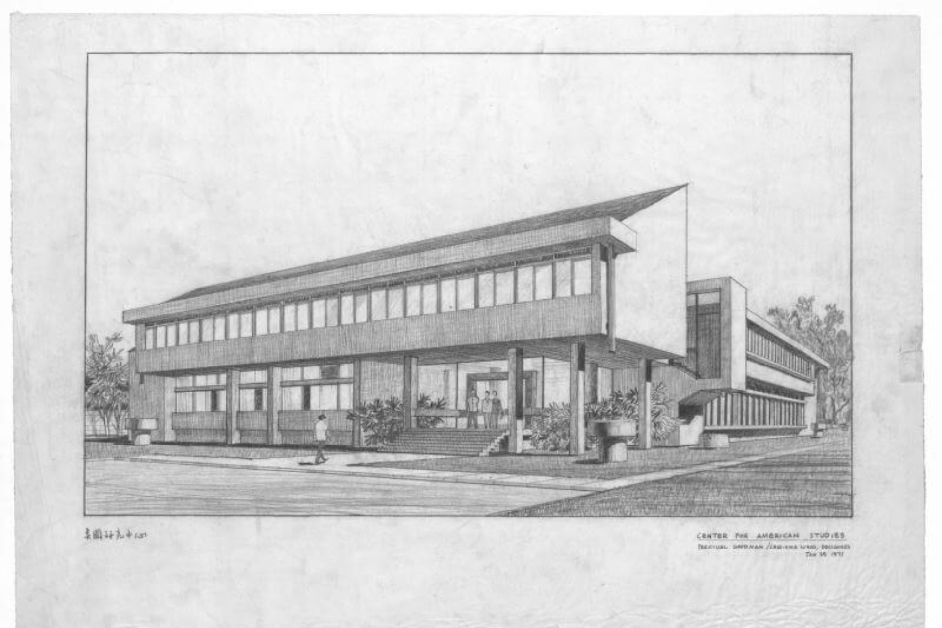 ↑中央研究院美國文化研究中心(後更名為歐美研究所),由王秋華建築師與古德曼於1970-1971年設計,並於1972年竣工。開闊性的設計,是她的代表作之一。