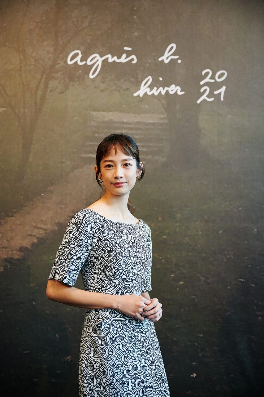 黑白之間的對比,就用灰色與奶茶色來調和,不僅可以保留清楚的輪廓,同時就可以在視覺上展現和諧,如此一來即便在秋冬穿深色衣服,也不會覺得一成不變。在發表會上 agnès b. 邀請簡嫚書一起共襄盛舉,身穿 agnès b. 秋冬與巴黎街頭藝術家 Jordane Sager 合作推出的最新藝術家聯名洋裝,帶著復古韻味的修身剪裁,和充滿韻律的幾何圖樣,展現立體層次,有個性又有女人味。