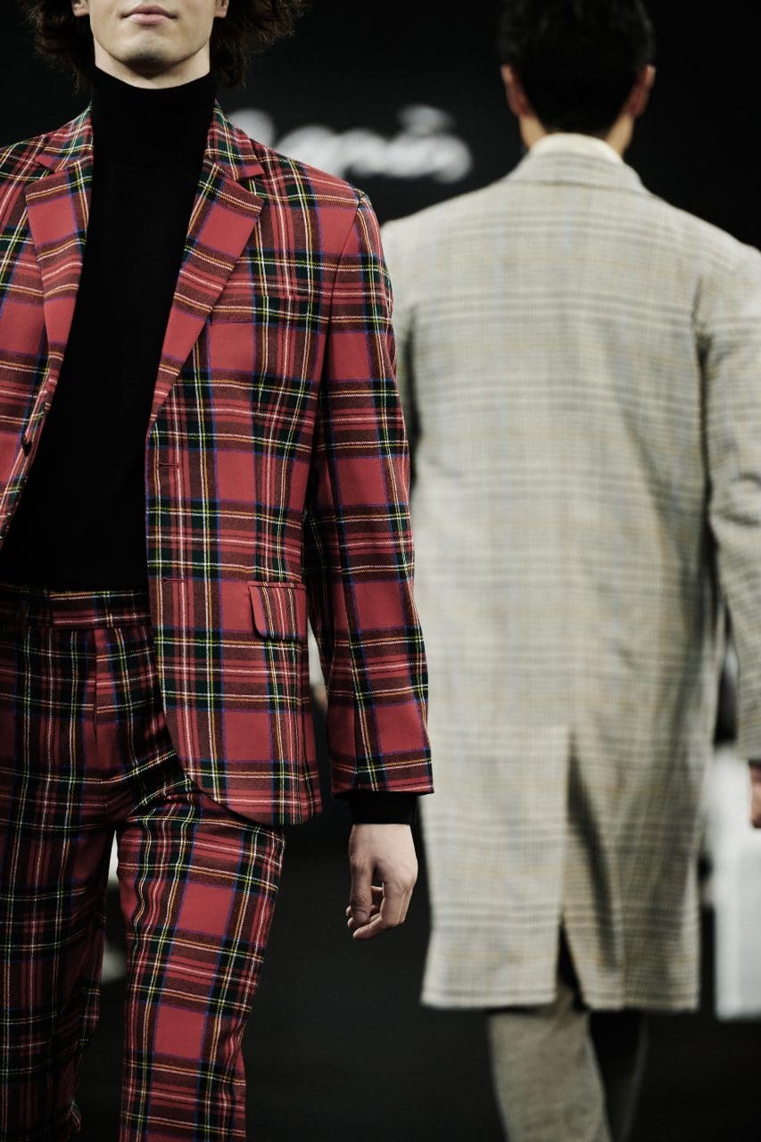 除了黑白之外,這一季的衣服還充滿音樂性,像是用紅黑蘇格蘭紋毛呢材質,打造成的鉛筆裙和西裝外套,寬格紋套裝搭上歌詞 T-Shirt ,都讓人感受到演唱會的熱血沸騰,而連帽外套上的照片印刷圖案,更是帶出濃濃的搖滾氣息,可說是向搖滾音樂致敬。