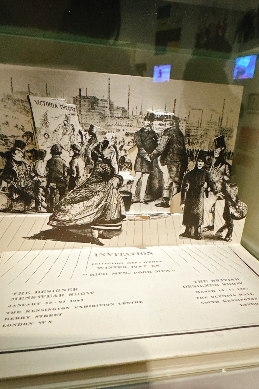 最後,來到名為「六君子:邀約」(The Six: by Invitation)的展覽終點站,陳設的是他們過往正式發表作品時所製作的邀請函,這也呼應其早年到訪日本的體會。於是,一根羽毛、手電筒、拼貼畫……等,都是傳遞設計師創作主題的藝術語言。而現在各品牌辦秀的「特殊」邀請函,原來六君子早在 40 年前就在玩了。