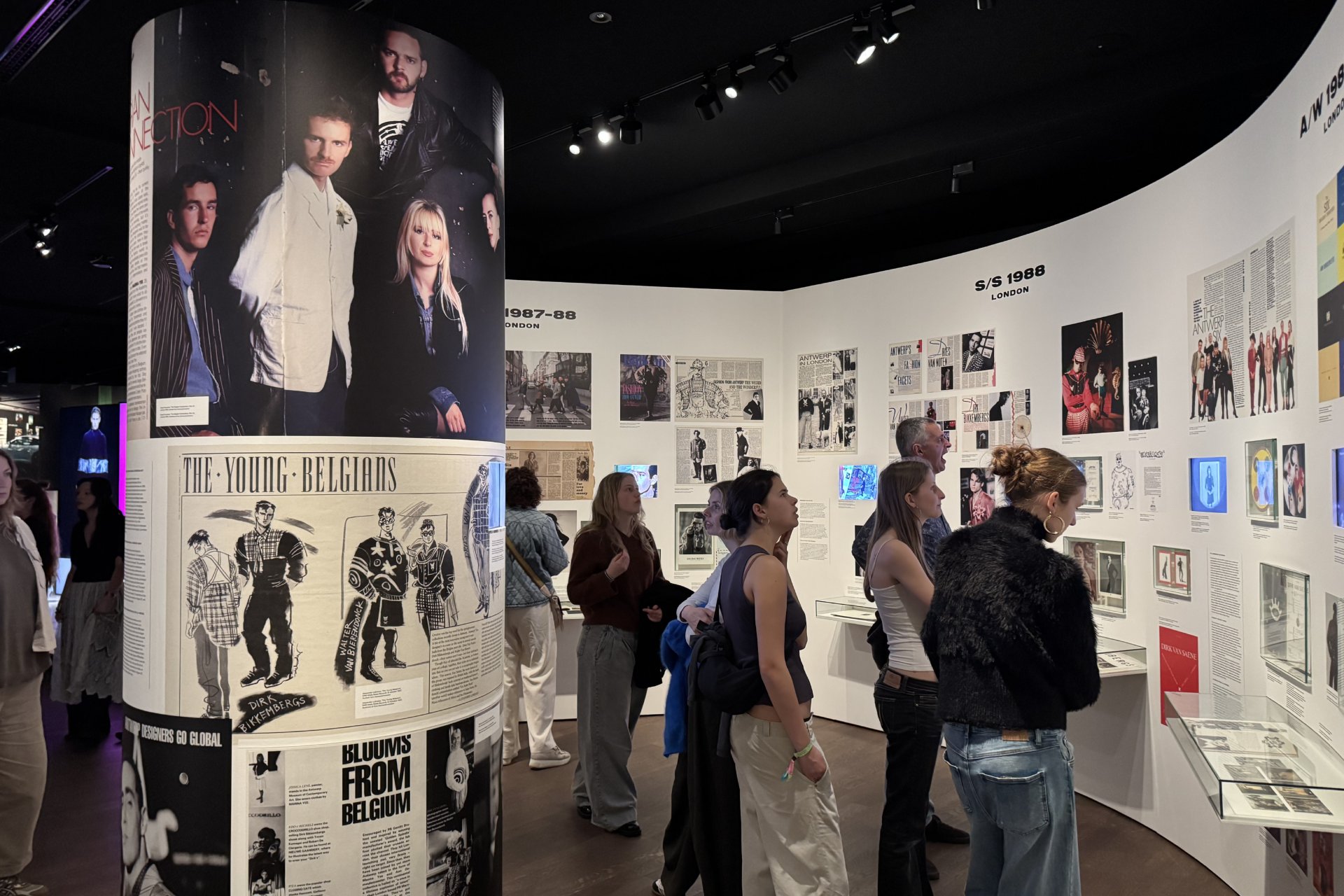 比較少人提及,但展覽特別點出的是他們學習和創業初期的社會文化環境。當時比利時的紡織和服裝產業,因為石油危機與製造業外移衝擊而深陷危機,促使政府推出為期 5 年的紡織業發展計畫,期望透過發掘與培養青年人才振興產業;1982 年比利時紡織服裝工業協會(ITCB)推動的金紡錘獎(Golden Spindle)也對這群設計師有著舉足輕重的推進力。