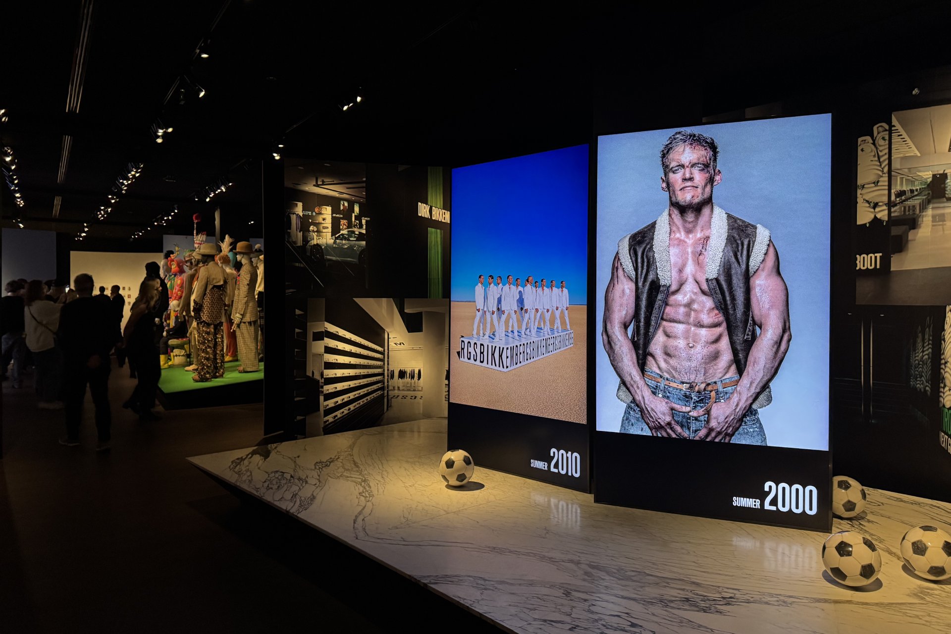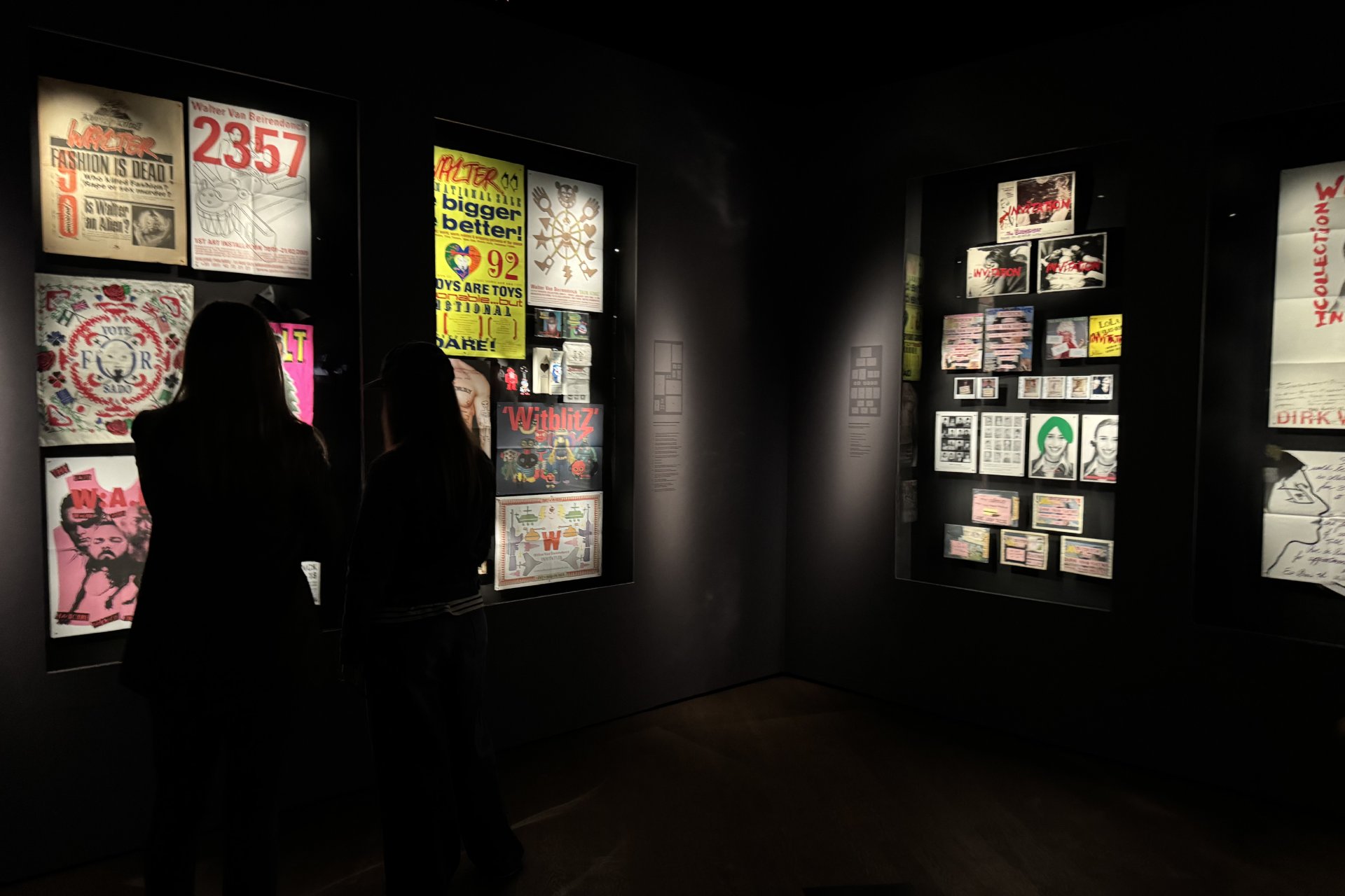 展覽前段採編年史式方式,透過手稿檔案、照片影像、印刷品和獎牌等珍貴素材,讓人快速理解是怎樣的時空背景和文化脈絡成就了這段時尚傳奇。第二部分則逐一介紹六君子的獨有風格。從運動陽剛、強調機能美學的 Dirk Bikkembergs;拼接鮮豔幾何、龐克與卡通符號,構築出超現實世界的 Walter Van Beirendonck(這才發現,原來 Y2K 時期大紅的 W&LT 是出自他手);Dirk Van Saene 從生活取得靈感,結合手繪藝術與多元素材拼貼出優雅氣息。