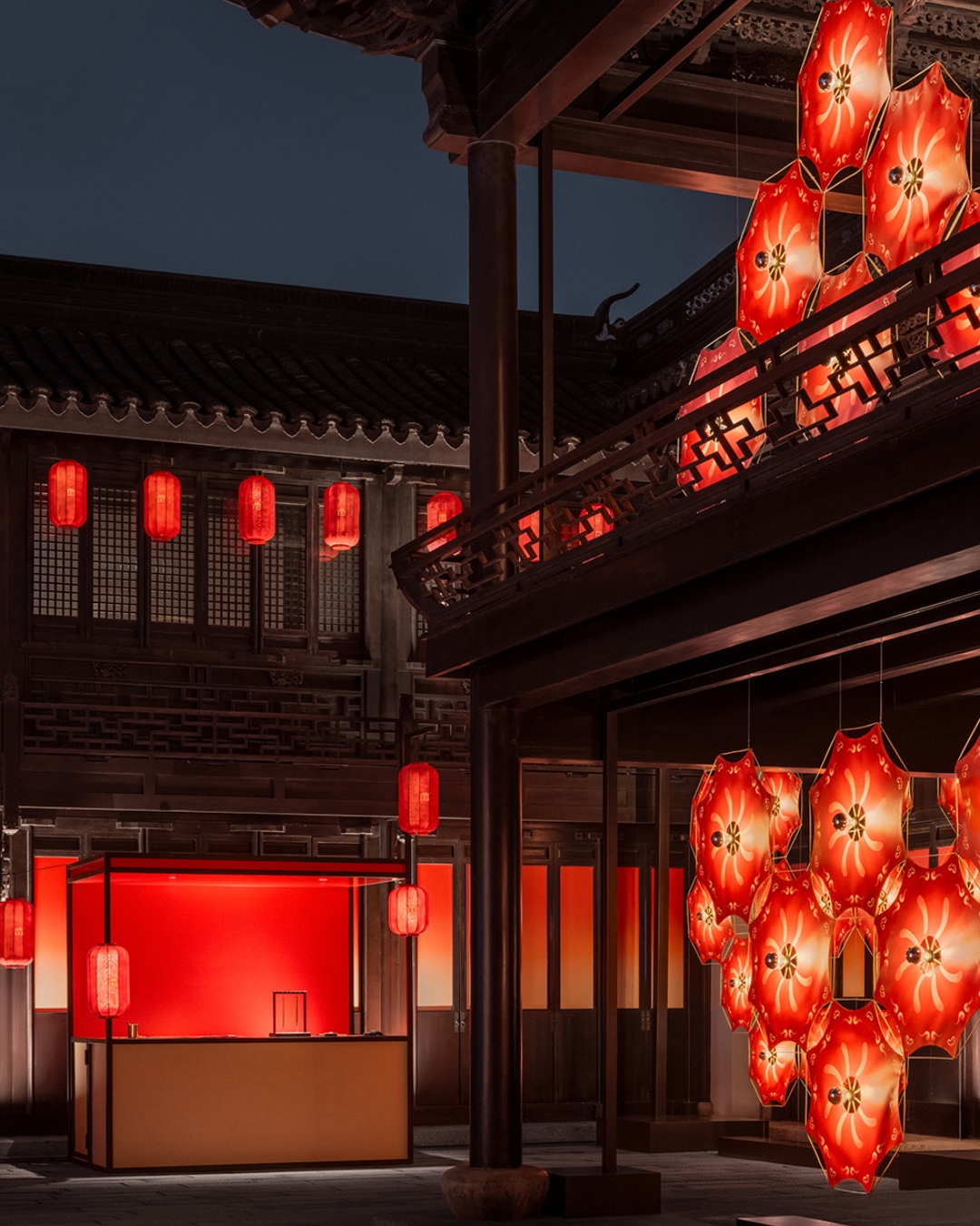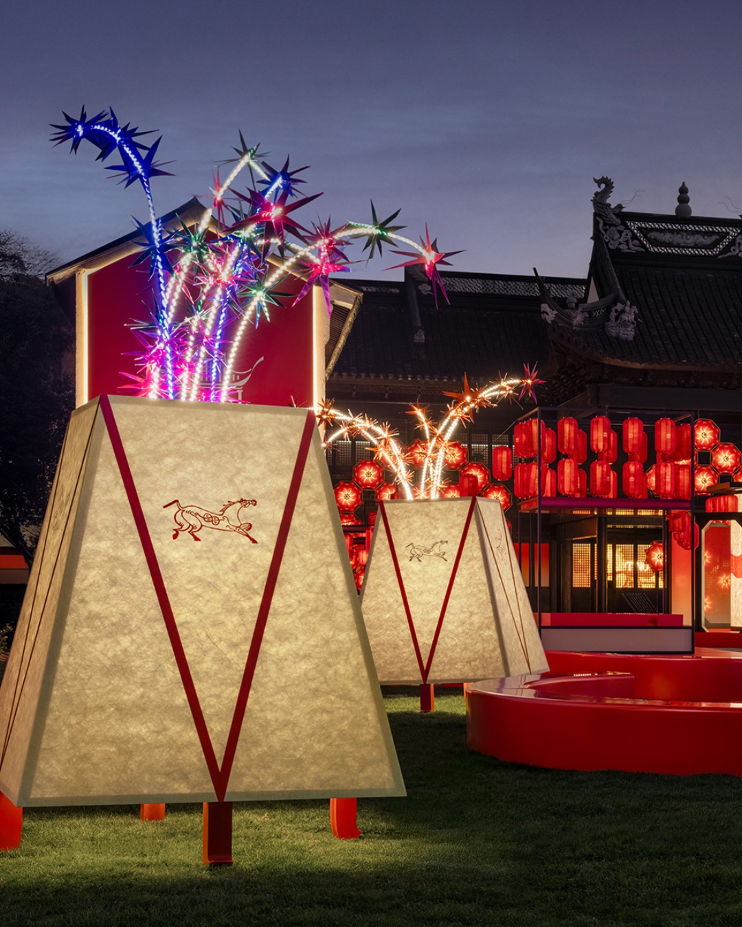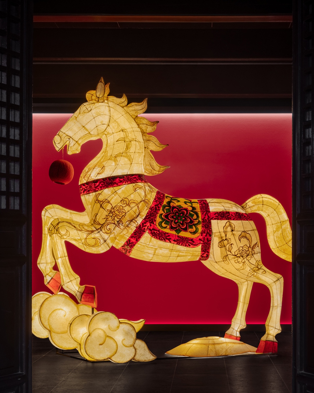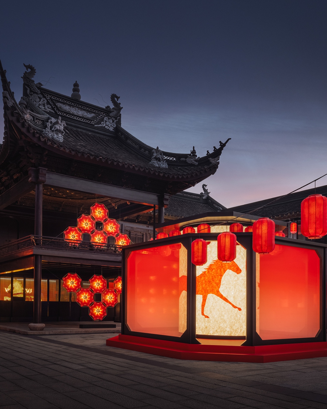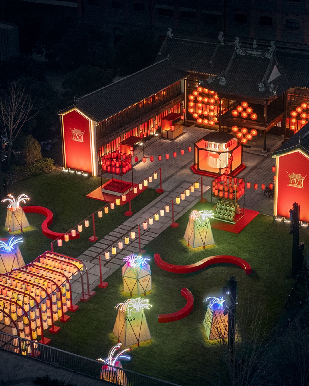 除此之外,Valentino 也攜手上海外灘美術館館長暨首席策展人朱筱蕤,聯合七位藝術家共同創作,讓時尚與藝術在百年廟宇中自然流洩。以燈光為線索,從科技藝術到古老記憶,在現代與歷史的交錯之間,重新詮釋馬年的祥瑞寓意。像是李文濤的中國非物質文化遺產佛山彩燈作品《馭夢騰駒》,讓傳統技藝散發出全新生命力。而李昊哲的《推窗入夢》,則運用動態捕捉,讓觀眾能夠赤手伸入窗框,繪製動態畫卷。