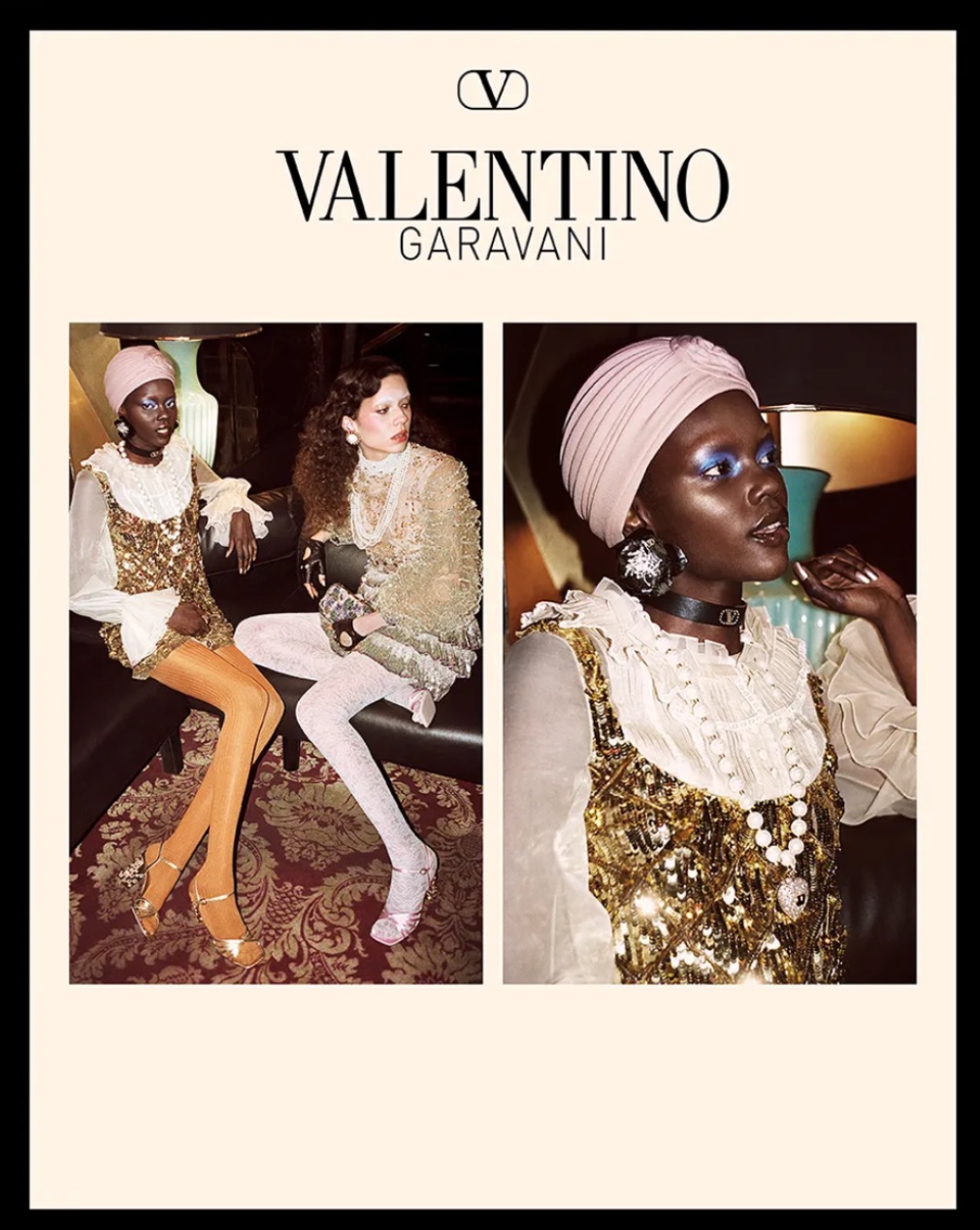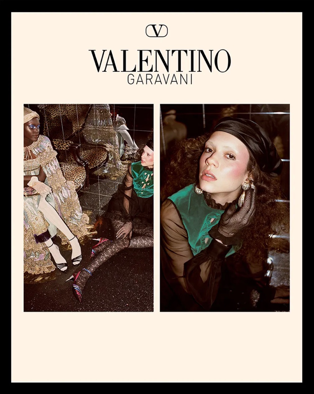 本次 VALENTINO AVANT LES DÉBUTS 節日系列,也是創意總監 Alessandro Michele 設計的首個系列。在先前的廣告大片中,將70年代復古舞會的流光溢彩作為靈感,提取品牌的經典元素:刺繡、亮片與提花布料,將黃金年代的 DNA 重植於 2025 的早春系列,是時空的一次趣味交會。閃閃發亮的視覺,細緻繁複的服裝,繁而不雜、盡顯節日閃耀的美感。