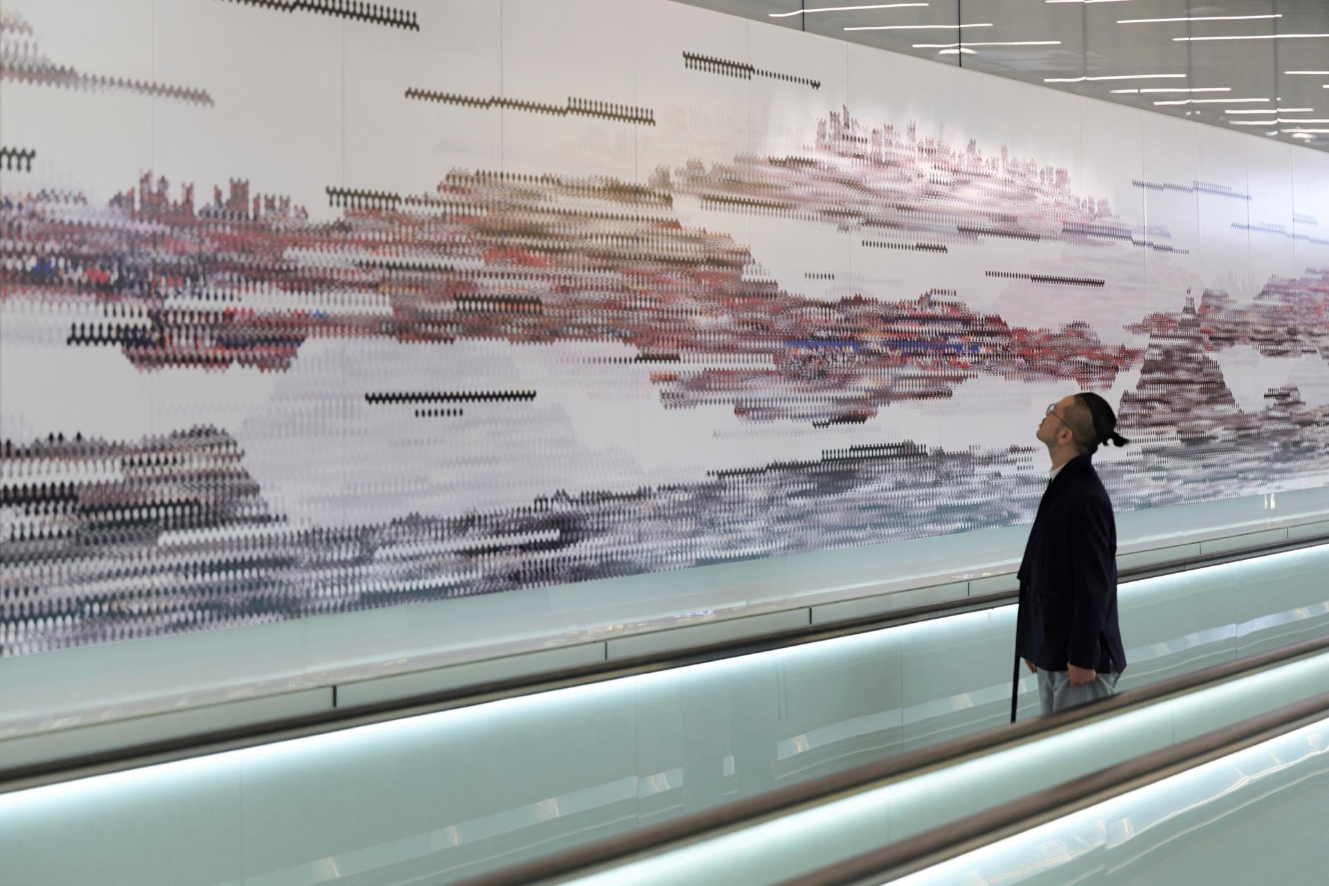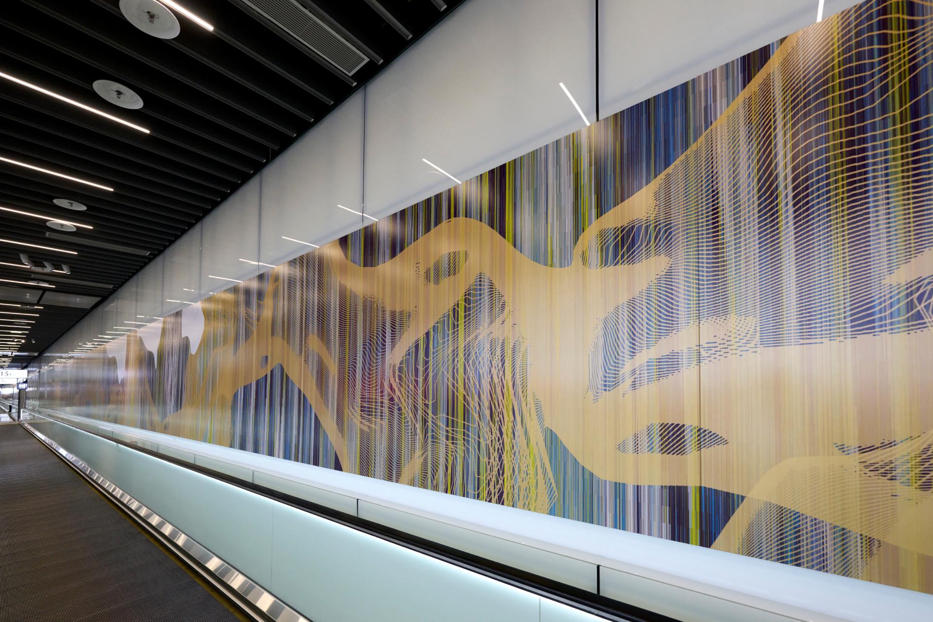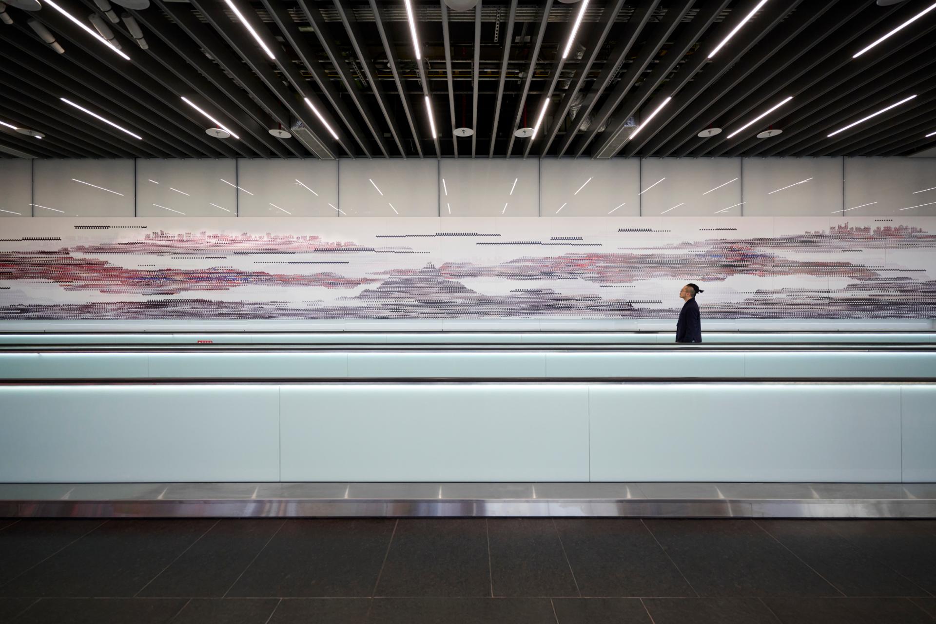 《國境之⾨·島嶼寓⾔》共七幅作品加總全⻑達 300 公尺,為⽬前台灣規模最⻑的公共藝術,透過科技語彙結合⽂化敘事,為台灣「國⾨」開啟嶄新的視覺篇章。