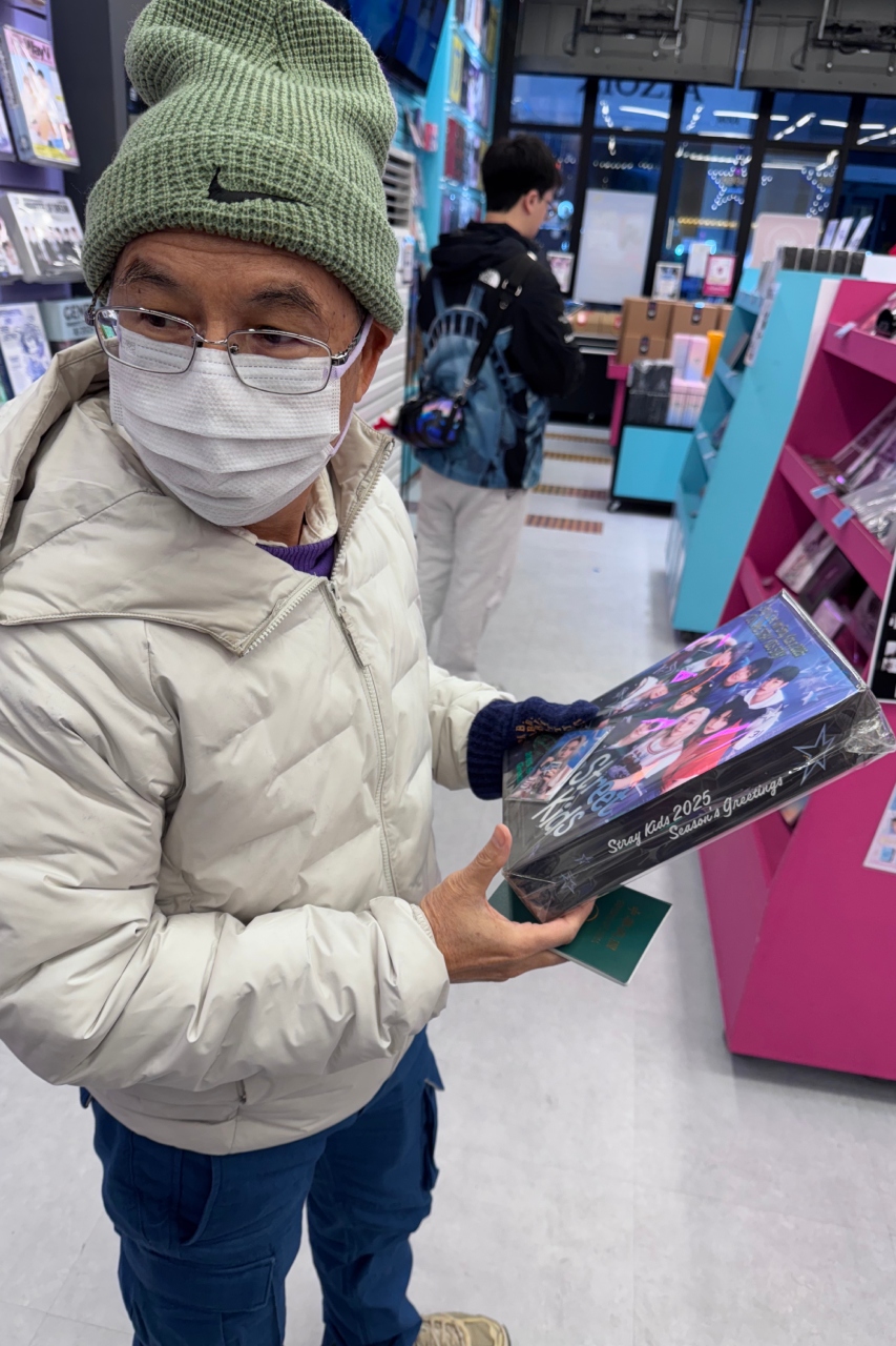 ↑ 「在首爾完全無法發揮日文能力的柴克瑞,接下一個親戚小孩的委託,請他幫忙買男子偶團的專輯,柴克瑞在唱片行中展露他滿滿的疑惑。」——豬豬