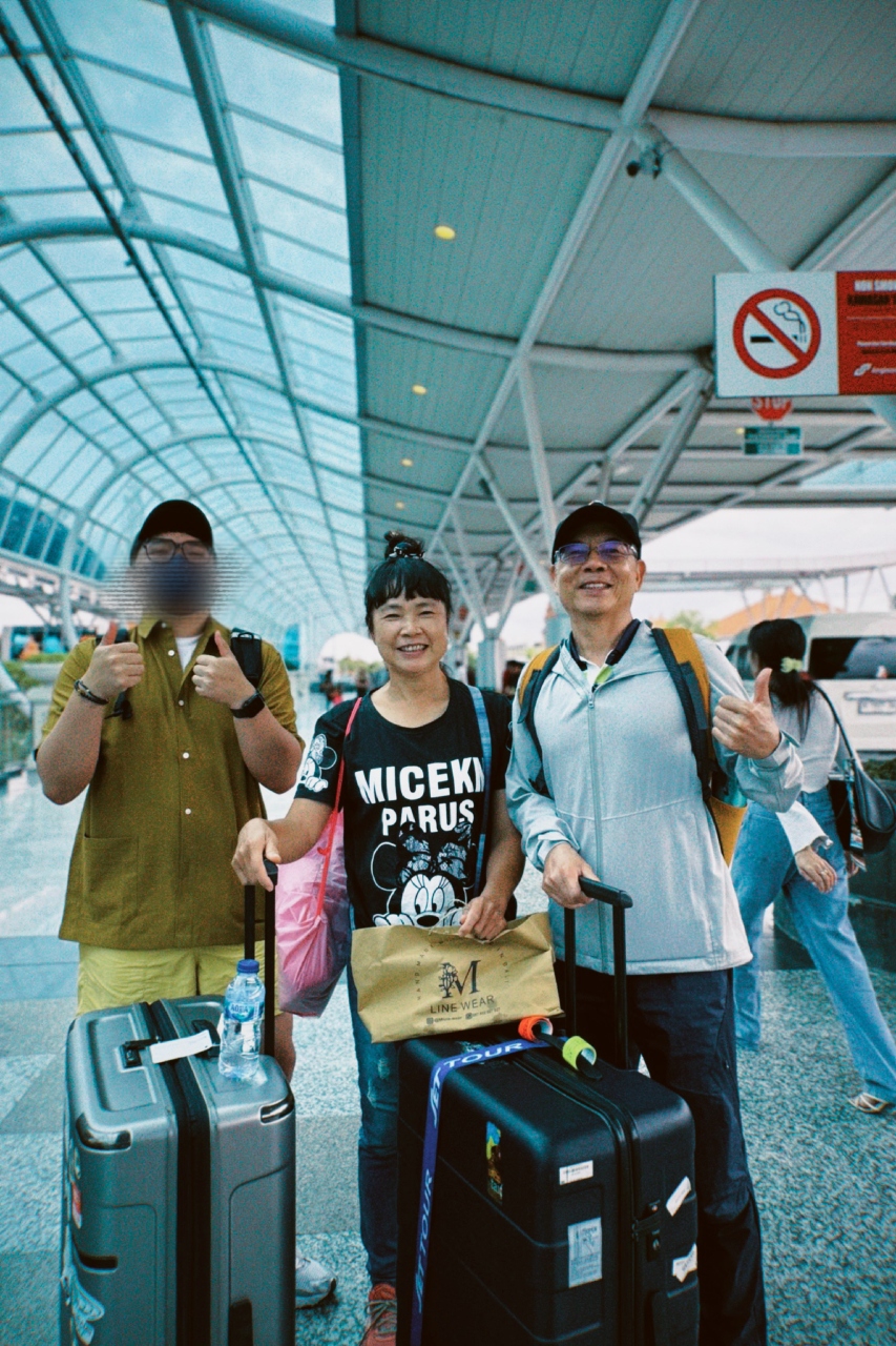 ↑ 「2024整趟峇里島旅行我們都沒合照,到了回國前在機場,才被朋友提醒要和爸媽合照。」——豬豬