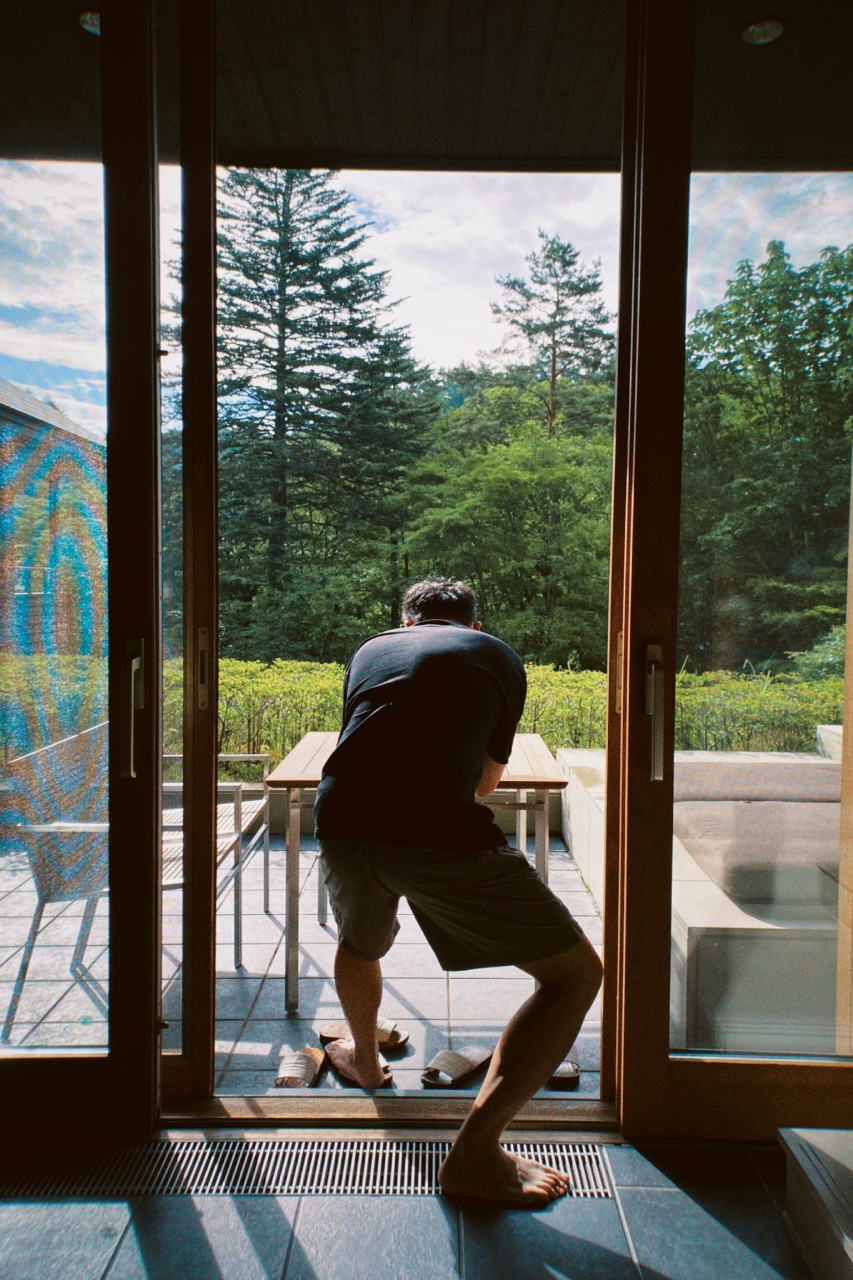 ↑ 「2023帶他們去住輕井澤虹夕諾雅,我爸拍我在拍攝房間早餐,努力經營社群素材的兒子。」——豬豬