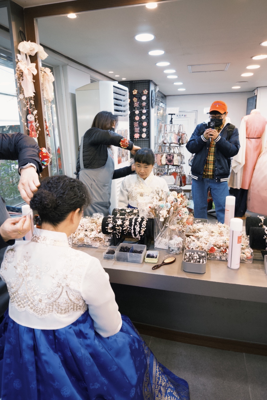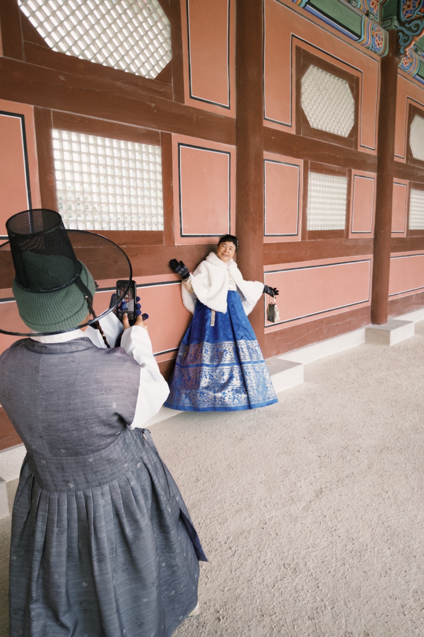 ↑ 「從一開始規劃要去韓國後,迪娜就一心只想著她一定要去景福宮穿韓服。平常很怕麻煩的她,連編髮都可以接受。」——豬豬