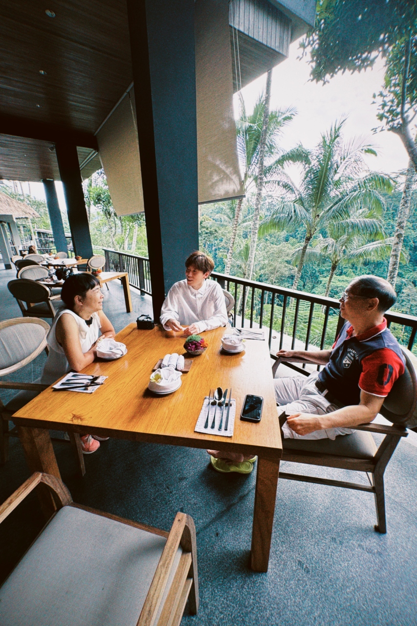 ↑ 「2024去峇里島虹夕諾雅,這次旅遊的組成還多了朋友,整個風情很不一樣,吃早餐的時候子凡(陪沈團成員)比我還像他們兩個的兒子。」——豬豬