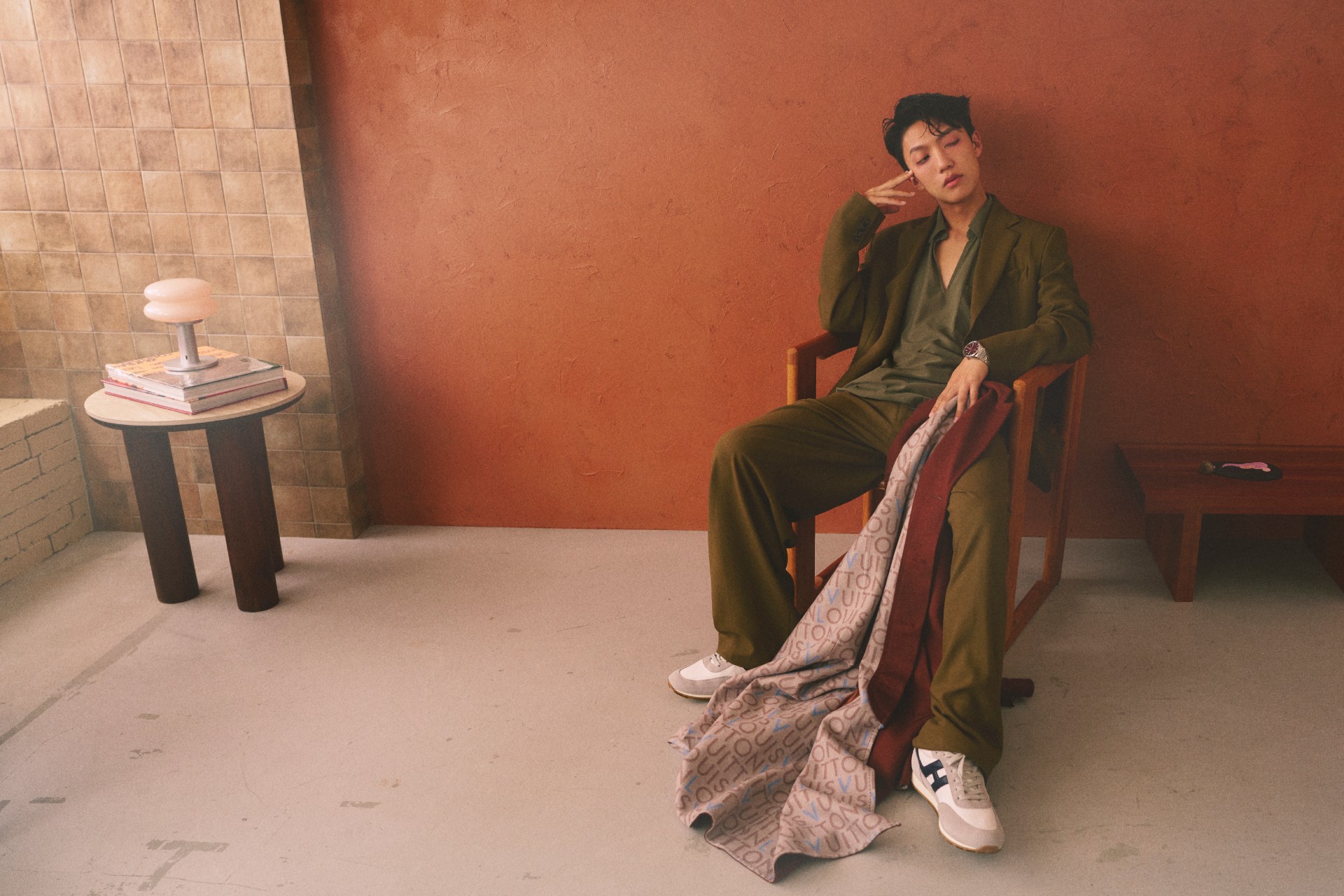 Fashion:Blazer, Shirt, Trousers by Tod's;Coat by Louis Vuitton;Shoes by HOGAN;Watch by TAG Heuer