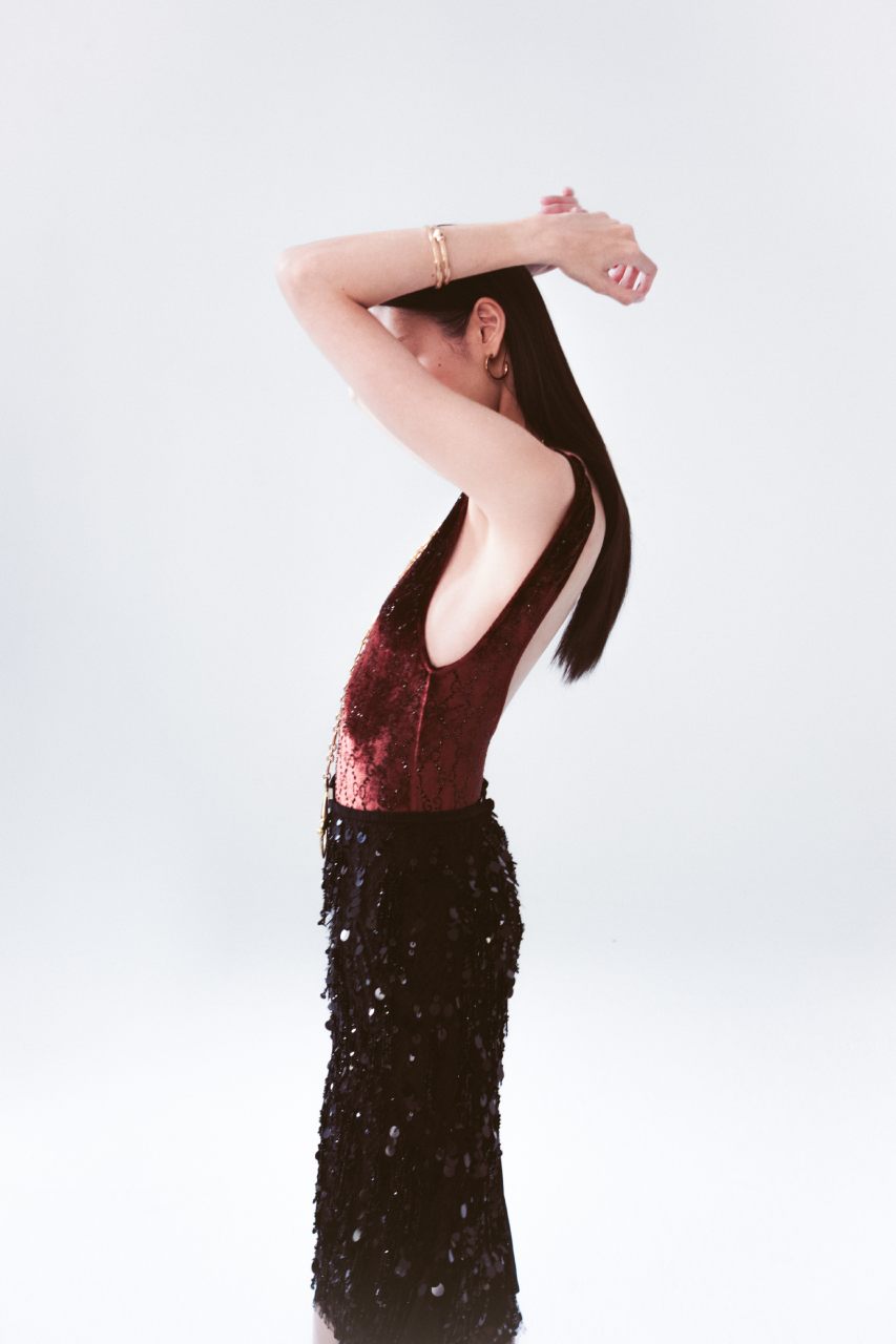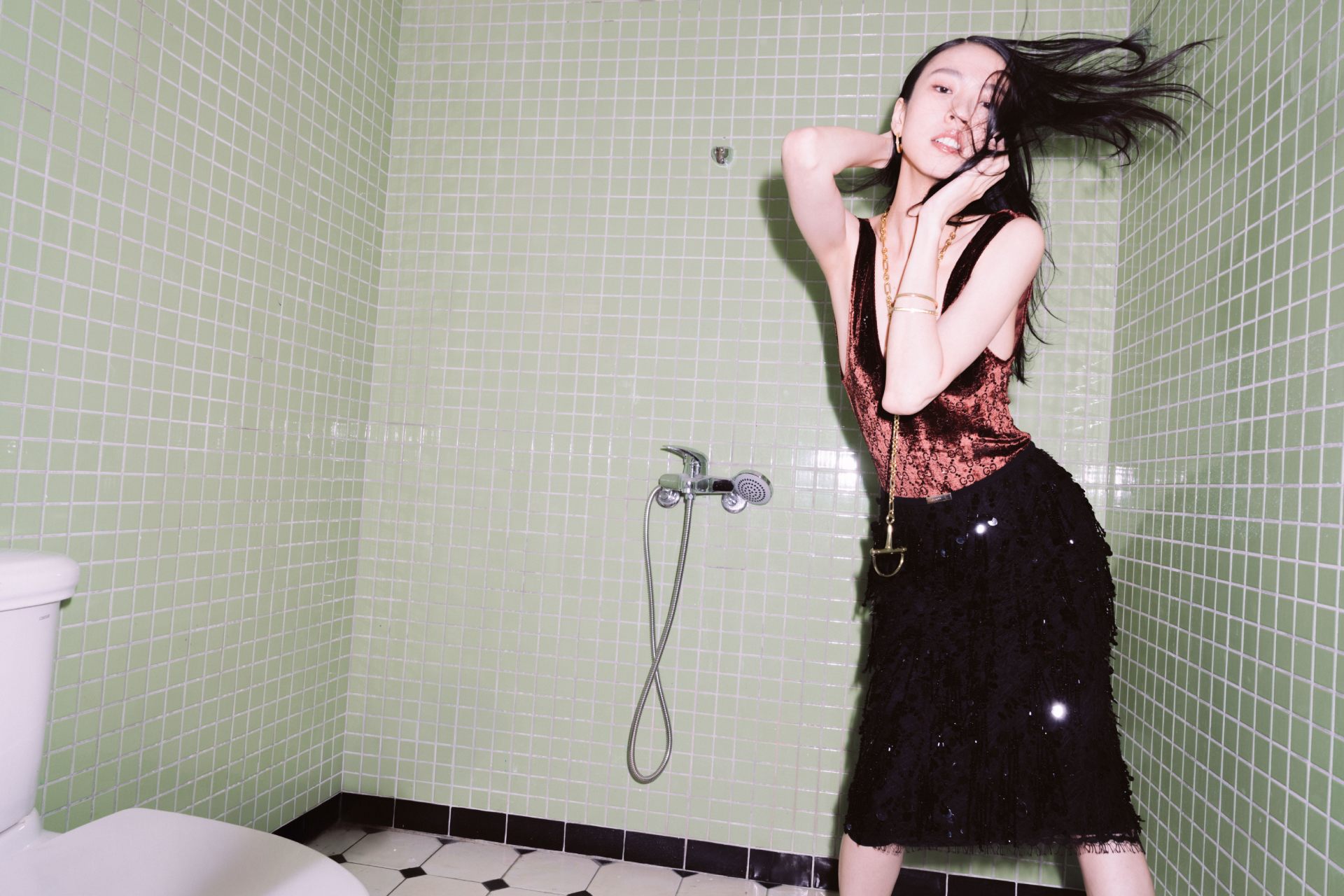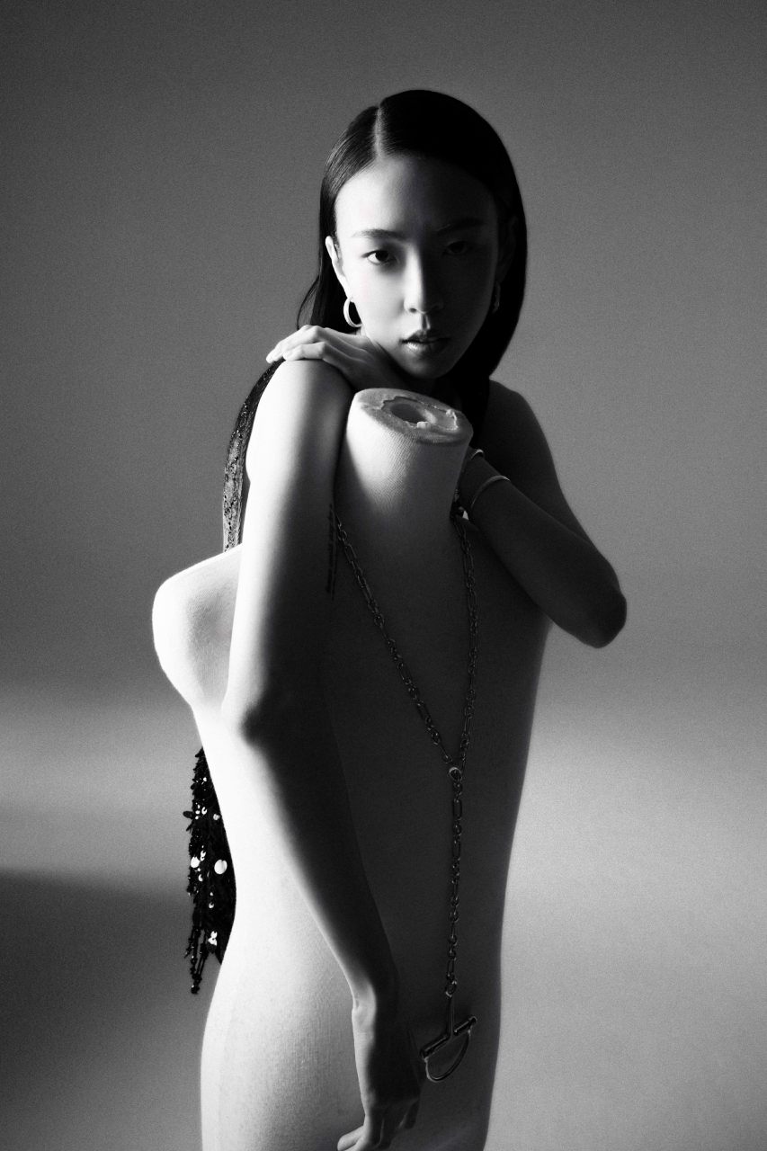 「但我意思是,我真的是這樣看待自己的,不覺得我有什麼特別標籤,就是很開放的人吧!很能接受不一樣的想法,不喜歡 judge別人。」纖長的手指在妝髮師的筆刷間找空隙揮舞。真要說最常評斷的,就是自己,「剛踏入模特兒行業時很迷茫,覺得自己什麼都不夠好,可能一輩子也沒機會碰到動態影像。」直到拍攝了男友的音樂 MV(順帶一提,她的男友是台灣樂團 JADE 主唱兼吉他手),「表演......感覺蠻好的。」