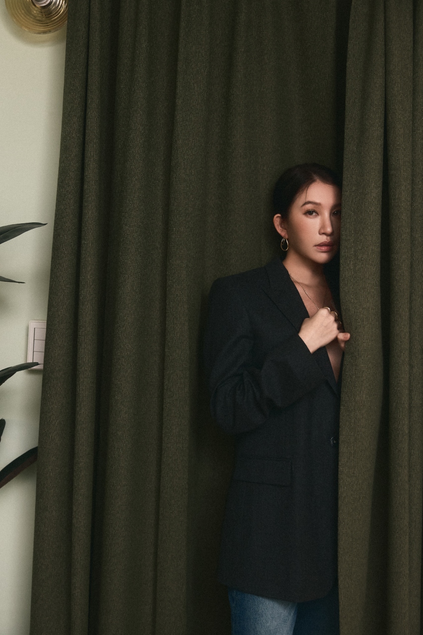 Fashion:Blazer by Stella McCartney;Jewelry by PANDORA