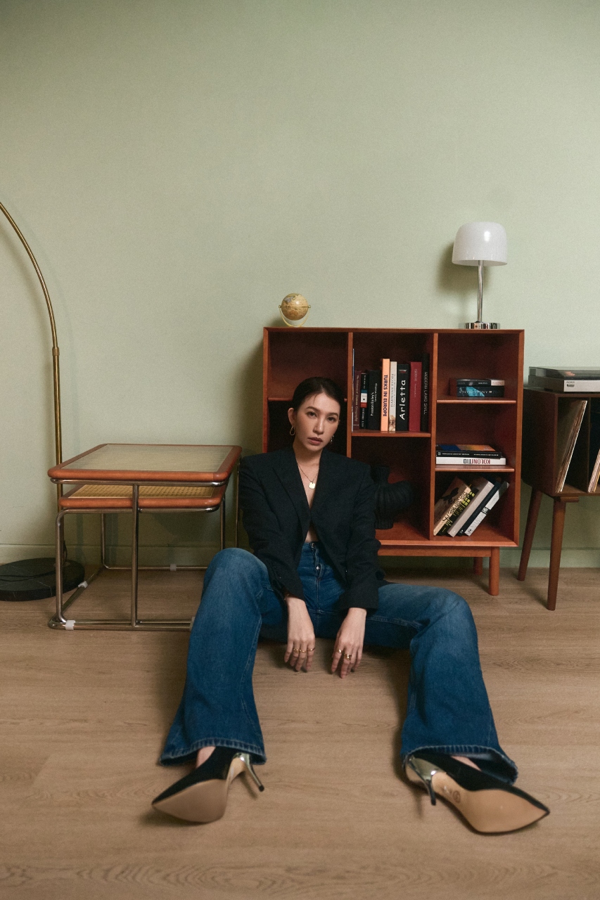 Fashion:Blazer by Stella McCartney, Jeans by A.P.C.;Shoes by Michael Kors;Jewelry by PANDORA