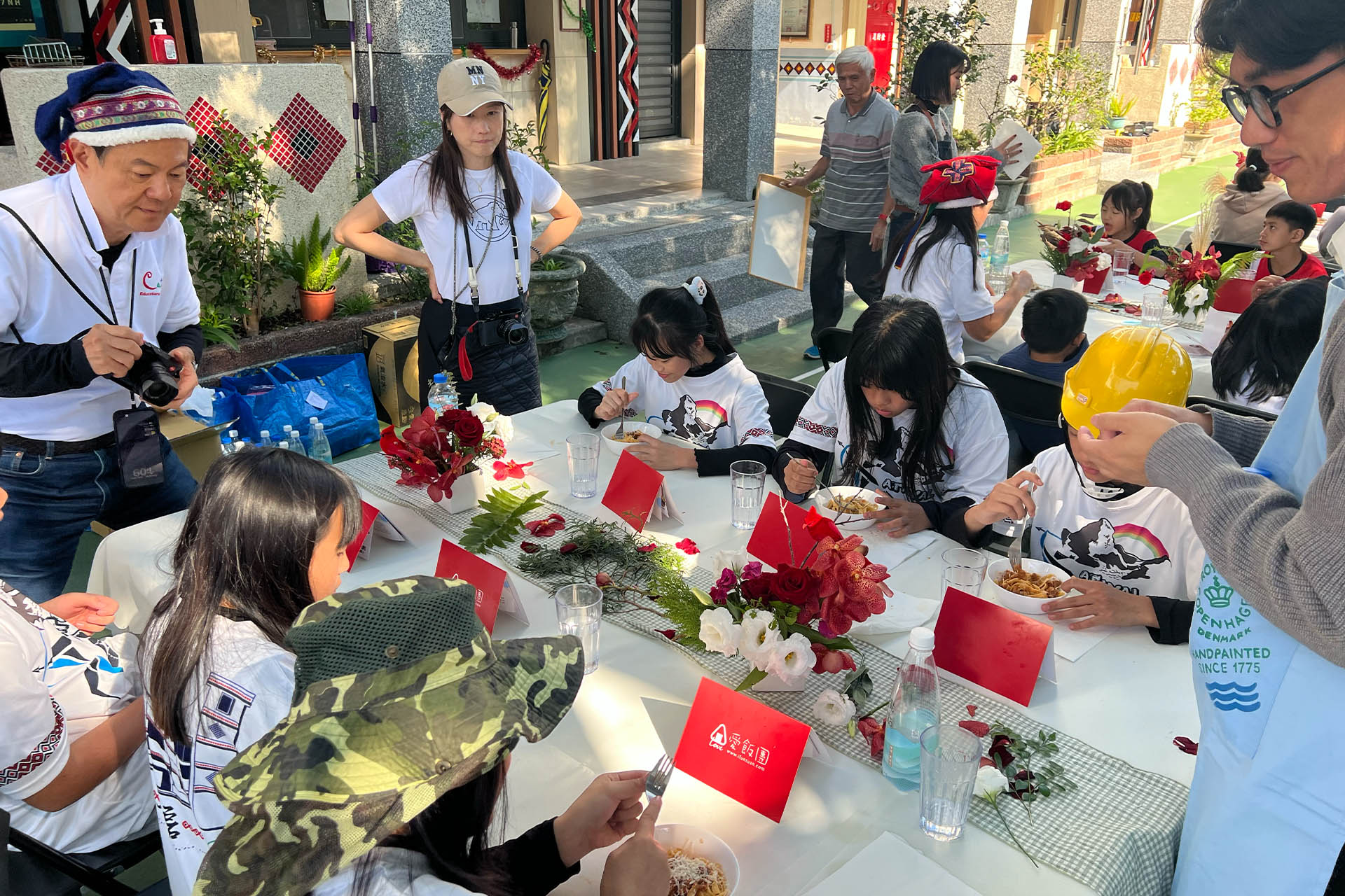 12月的新竹尖石鄉山間非常的冷,但是那天的陽光灑在餐會桌巾上,錦屏、石磊、玉峰三間國小的孩子們難得在山裡品嚐到義大利菜,露出飽滿足的笑容洋溢,讓我們每個人心中都是暖暖的。