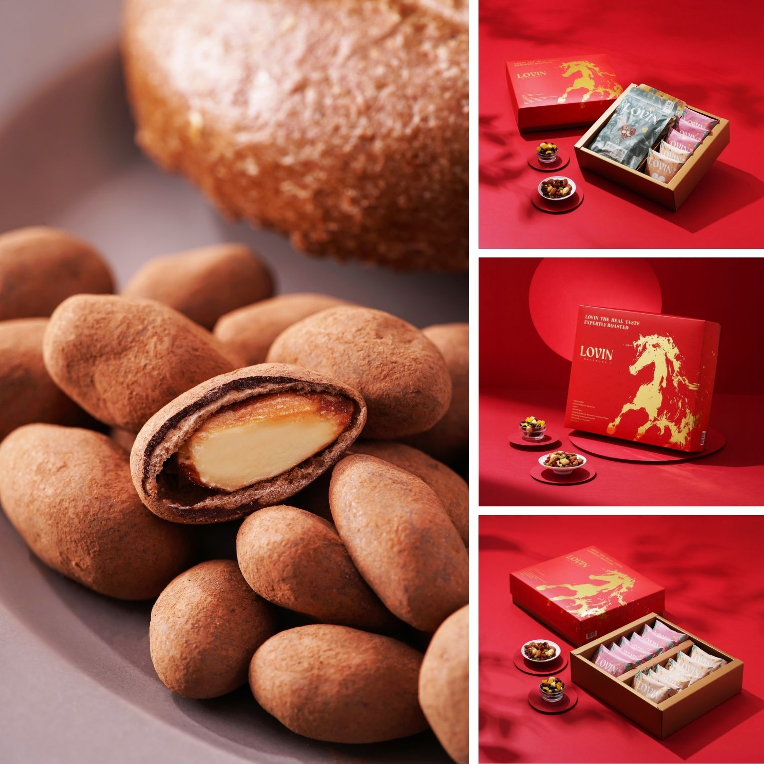 LOVIN 頂級堅果,從開端就為質感生活打底。母公司同興實業自 1946 年深耕堅果原料進口,近 80 年的選品經驗,讓頂級不流於口號。2022 年誕生的 LOVIN,把這份專業轉化為貼近日常的堅果美學,健康、美味,同時講究風格與細節。騰躍金韻禮盒以紅金為主調,喜氣被收斂成耐看的模樣。盒內堅果同樣回歸本質,綜合堅果隨手包以低溫烘焙呈現夏威夷果仁、胡桃、腰果、核桃與杏仁粒的純粹香氣;綜合臻果加入南瓜子、黑豆與蔓越莓果乾,清爽又有層次;黑鑽可可杏仁則以可可微苦襯托杏仁油潤,成熟而不甜膩。是那種會被默默吃完,把健康與品味,自然放進生活裡的禮盒。