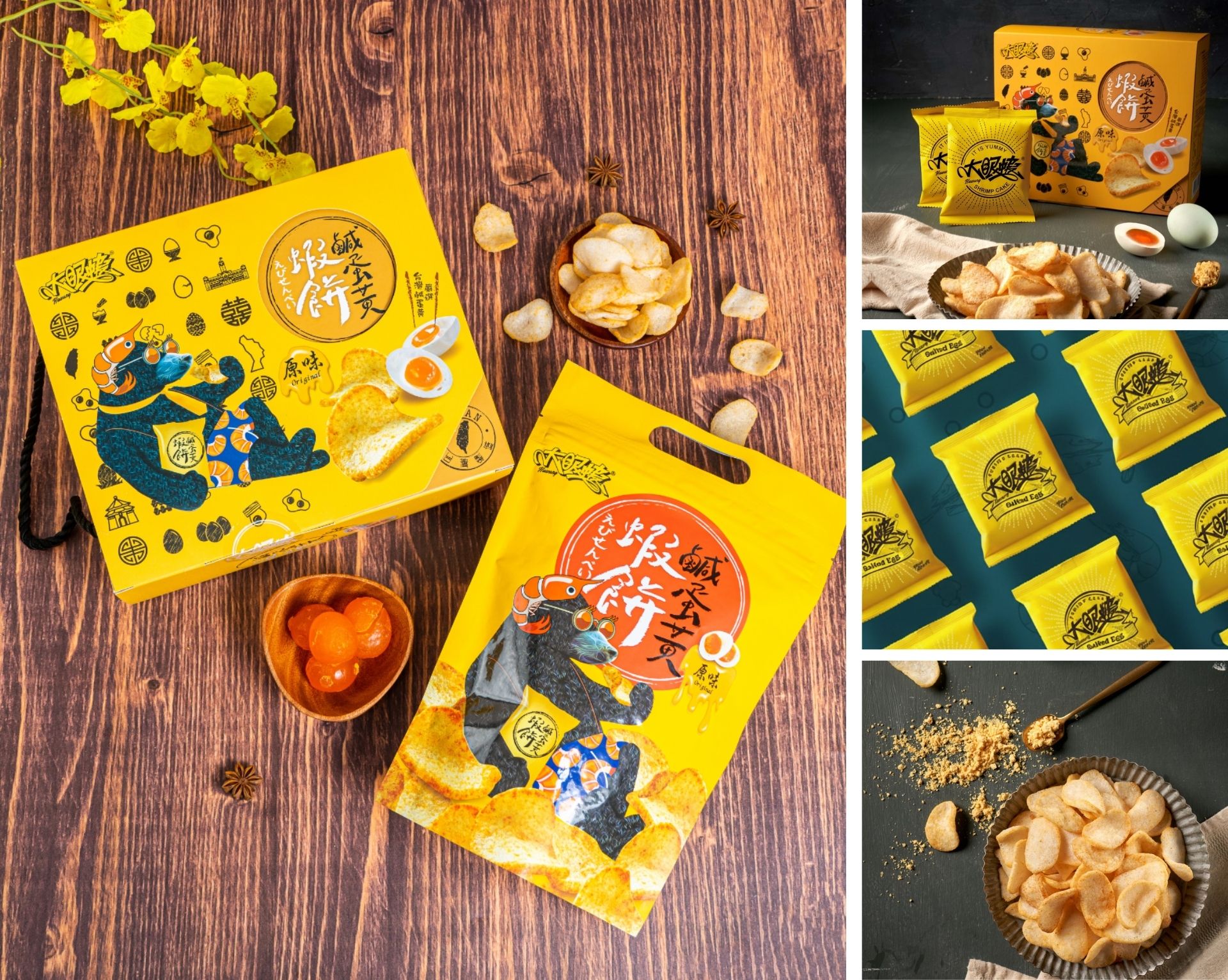重新定義蝦餅!大眼蝦 把熟悉的鹹蛋黃與蝦肉,轉化為停不下來的零食體驗。整顆鹹蛋黃研磨成獨特金沙粉,均勻融入餅體,蛋黃的濃郁不搶戲,而是與蝦肉的鮮甜自然交疊,香氣細緻、層次分明。「蝦肉餅-原味鹹蛋黃蝦餅禮盒」使用頂級蝦肉製成鮮蝦餅,用料講究,讓蝦味不靠重調味撐場,而是在咀嚼之間慢慢浮現;首創鹹蛋香風味,濃郁鹹香卻不卡油,涮嘴卻不膩口。小片尺寸、一口剛好,脆度俐落,節奏輕快得像是一首協奏曲,一片接一片停不下來。從航空貴賓室到年節茶几,它的存在感始終低調卻明確。作為熱銷 17 國、國外賣最好的台灣伴手禮之一,大眼蝦蝦肉餅還通過了 FSSC 22000 與 HACCP 認證。大眼蝦的眼睛很大,從來不是為了博眼球,而是讓人一試就記住。