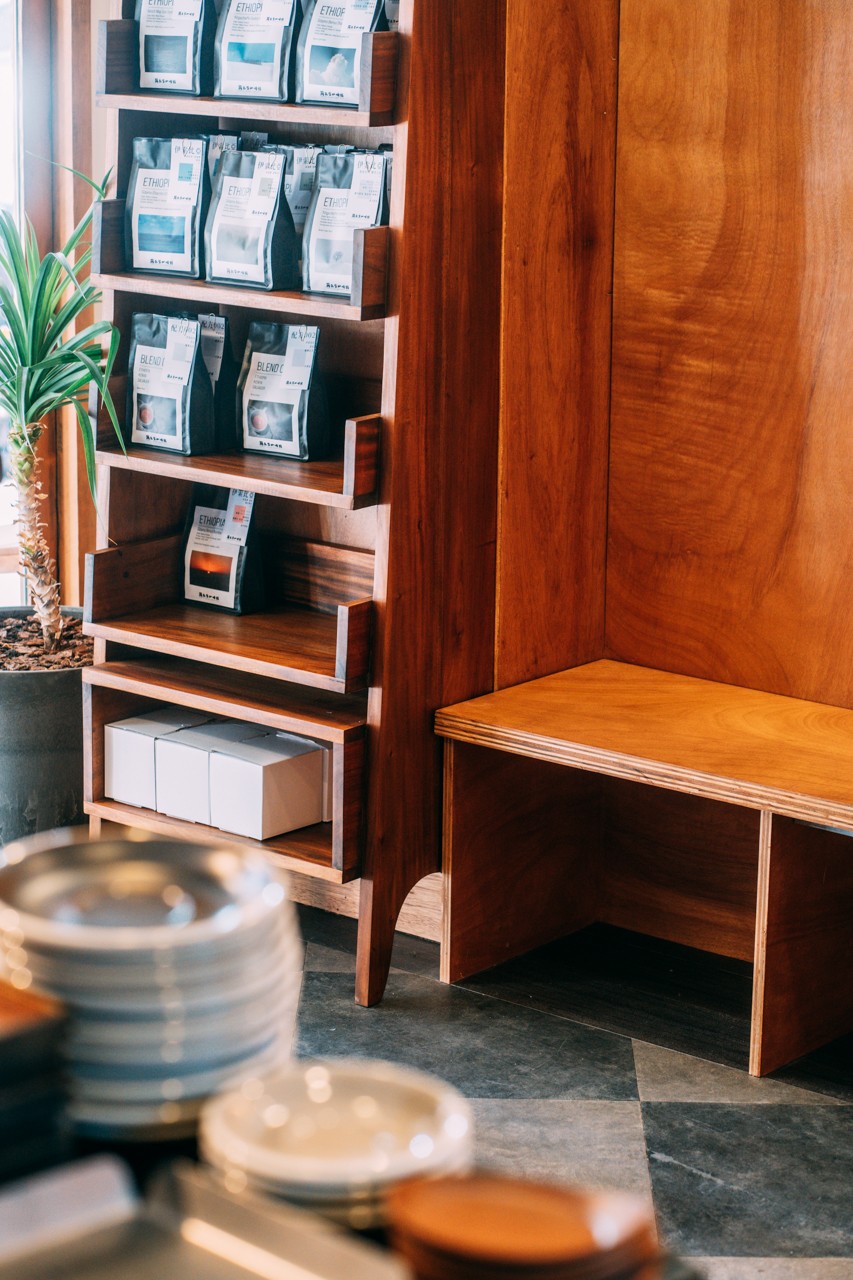 店內主打自家烘焙,架上陳列著豐富的單品豆,近期尤以蔣先生偏愛的衣索比亞莊園的咖啡豆為主軸,從淺至深,不同風味細膩分別。