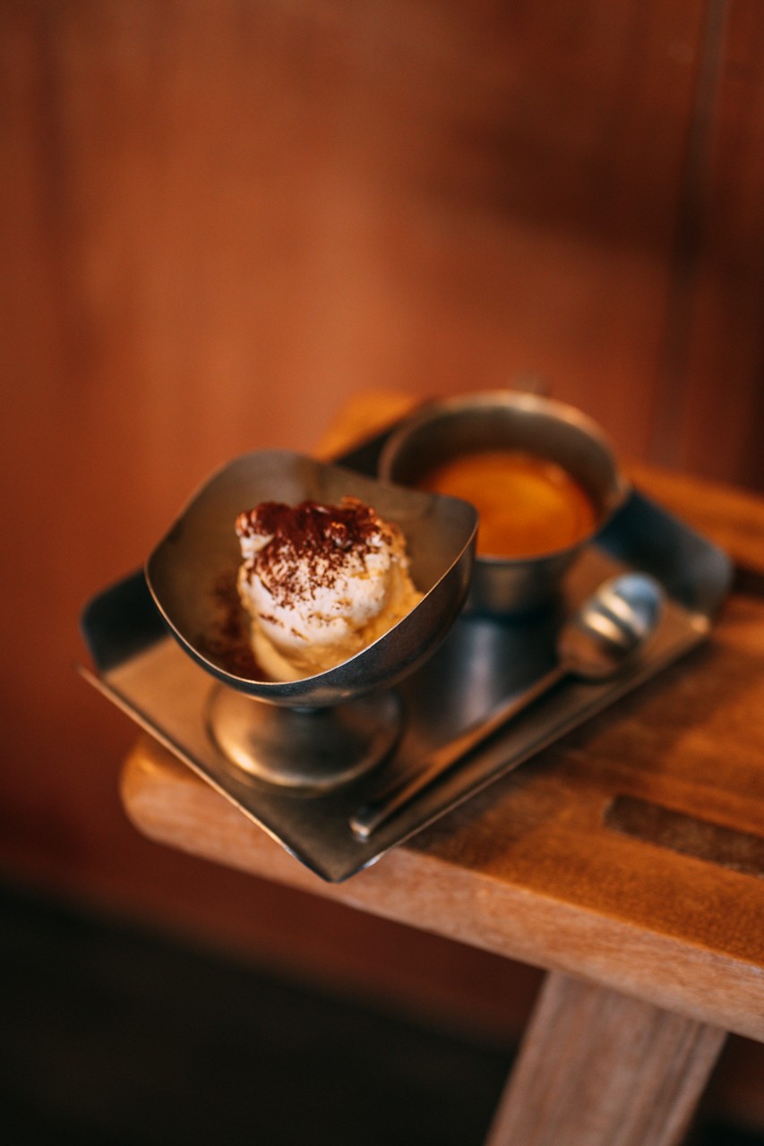 此外,為打破空間侷促感,刻意選用 MAVAM 櫥下型義式機,將龐大機身隱藏,以消弭視覺上的壓迫;這也讓中心處那台造型獨特的 La Marzocco Vulcano 磨豆機,意外成了焦點。當然店中也不乏專業的手沖選項,專注的細膩注水,萃取著每份精華,將風味完美呈現。