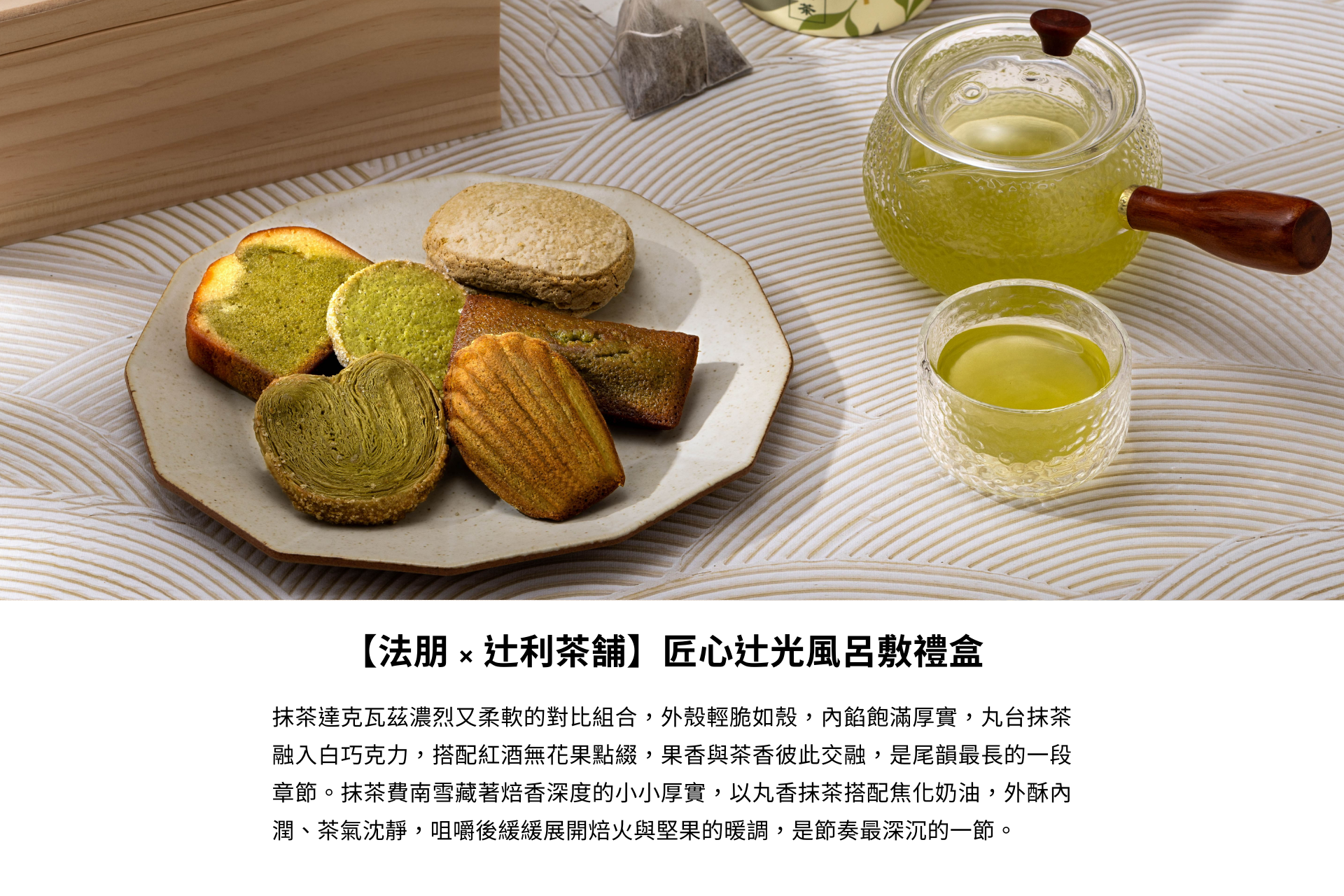 日本百年抹茶專賣店「辻利茶舗」,初次與享有甜點界香奈兒美譽的「法朋烘焙甜點坊」合作,聯名推出三款中秋限定禮盒。雙品牌的合作不僅是一場味蕾饗宴,更是一段日本茶與法式甜點交織的浪漫邂逅。從設計、食材到風味層次皆精心雕琢,傳遞節慶中的溫度與儀式感,在團圓時刻緩緩綻放茶香與祝福,獻上最值得珍藏的抹綠好味。
