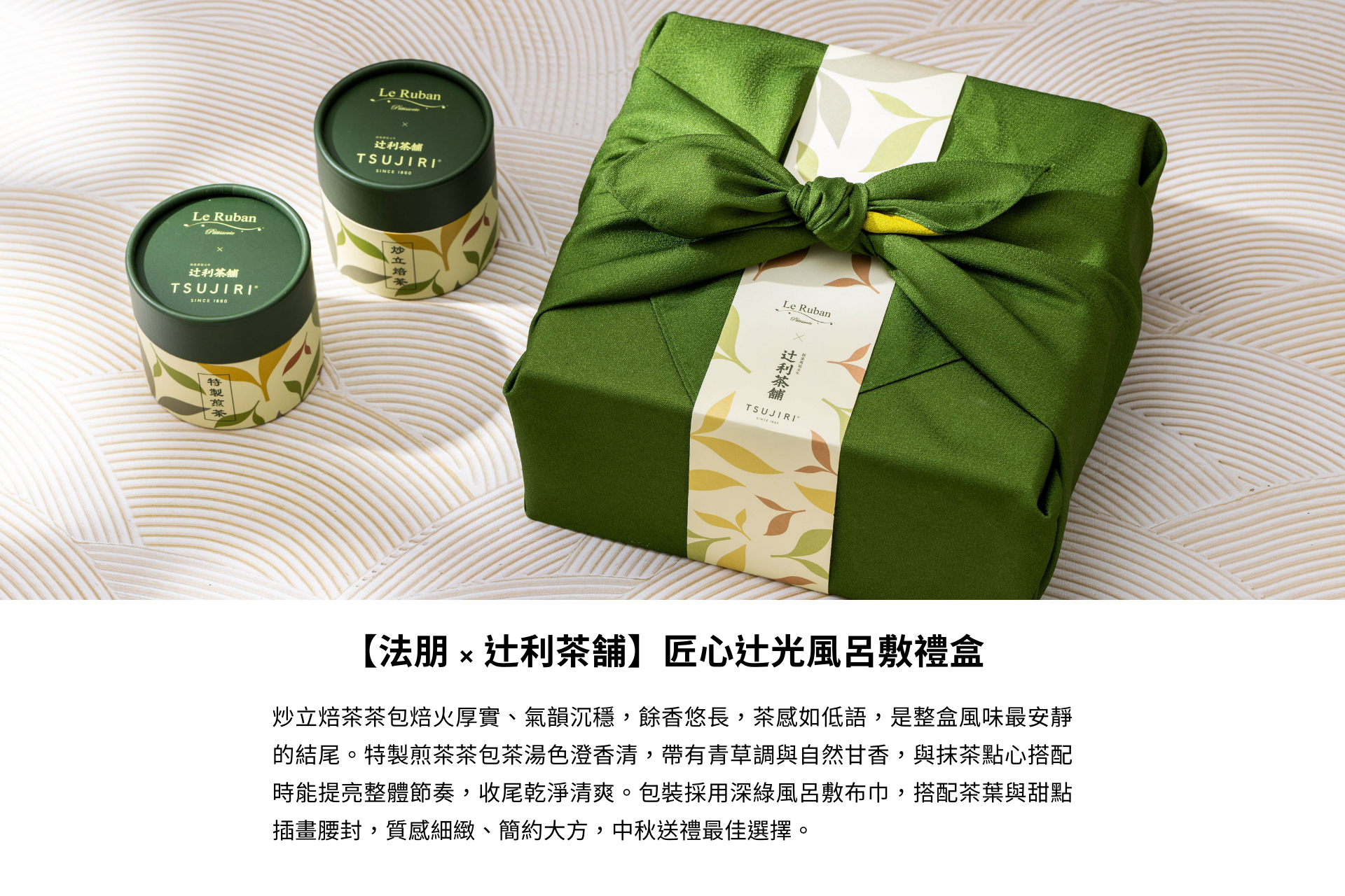 「辻利茶舗」攜手「法朋甜點烘焙坊」,推出中秋限定【匠心辻光風呂敷禮盒】,以茶香貫穿法式風味,帶來獨特的節慶體驗。嚴選「丸倉、丸台」宇治抹茶與焙火深沉的「丸香」鹿兒島抹茶,注入6款常溫法式甜點之中——從果香與茶香交融的抹茶達克瓦茲,到焙火與焦化奶油交織的抹茶費南雪,每一口都是層次豐富的味覺章節。隨盒搭配炒立焙茶與特製煎茶茶包,讓甜點與茶湯相得益彰,收尾清新而餘韻悠長。深綠風呂敷布巾包裝,簡約大方。日法風情相會、甜蜜邂逅,為這個中秋揭開一席清雅的茶宴。