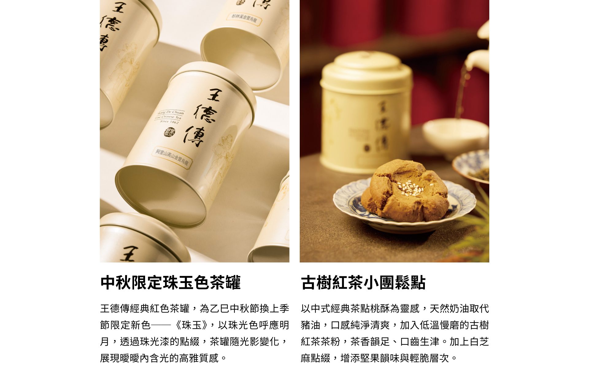 在數位時代裡,最珍貴的人情不在距離,而在心意。無論天南地北,只要心意相連,就能在同一輪明月下共賞佳節。王德傳茶莊今年推出中秋限定《雲月合茗》系列茶禮,以「雲端相見、合茗共賞明月」為概念,獻上遠方思念。《合茗禮盒》(如下圖)內含節慶限定珠光色茶罐,以杉林溪金萱烏龍為核心推出兩款茶禮,分別與帶獨特花果香、醇厚圓潤的迎香安尚烏龍組成《合茗雙茶禮盒》,與限定茶食《古樹紅茶小團鬆點》組成《合茗茶葉茶食禮盒》,茶香濃郁、齒頰留香,與摯愛親友共聚雲端,品茶賞月,情意悠長。
