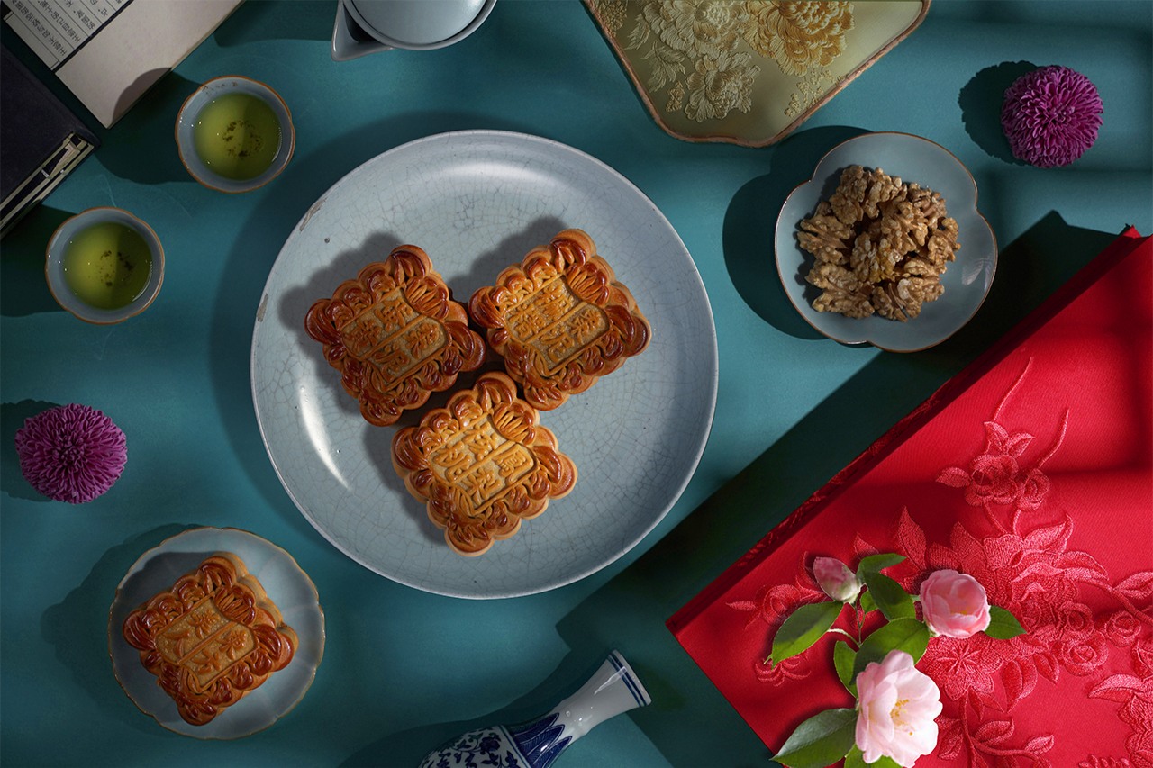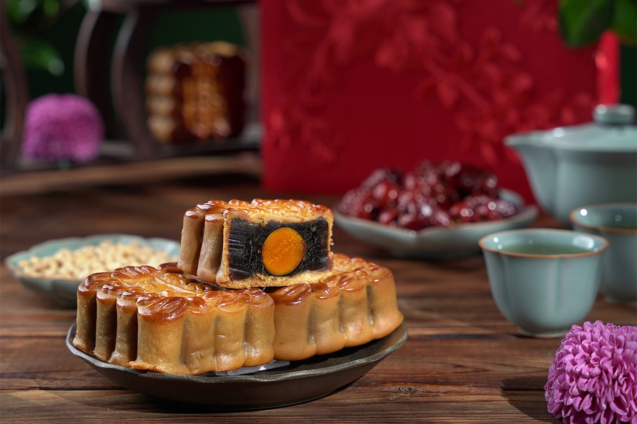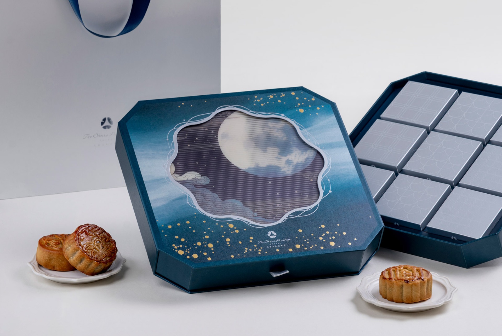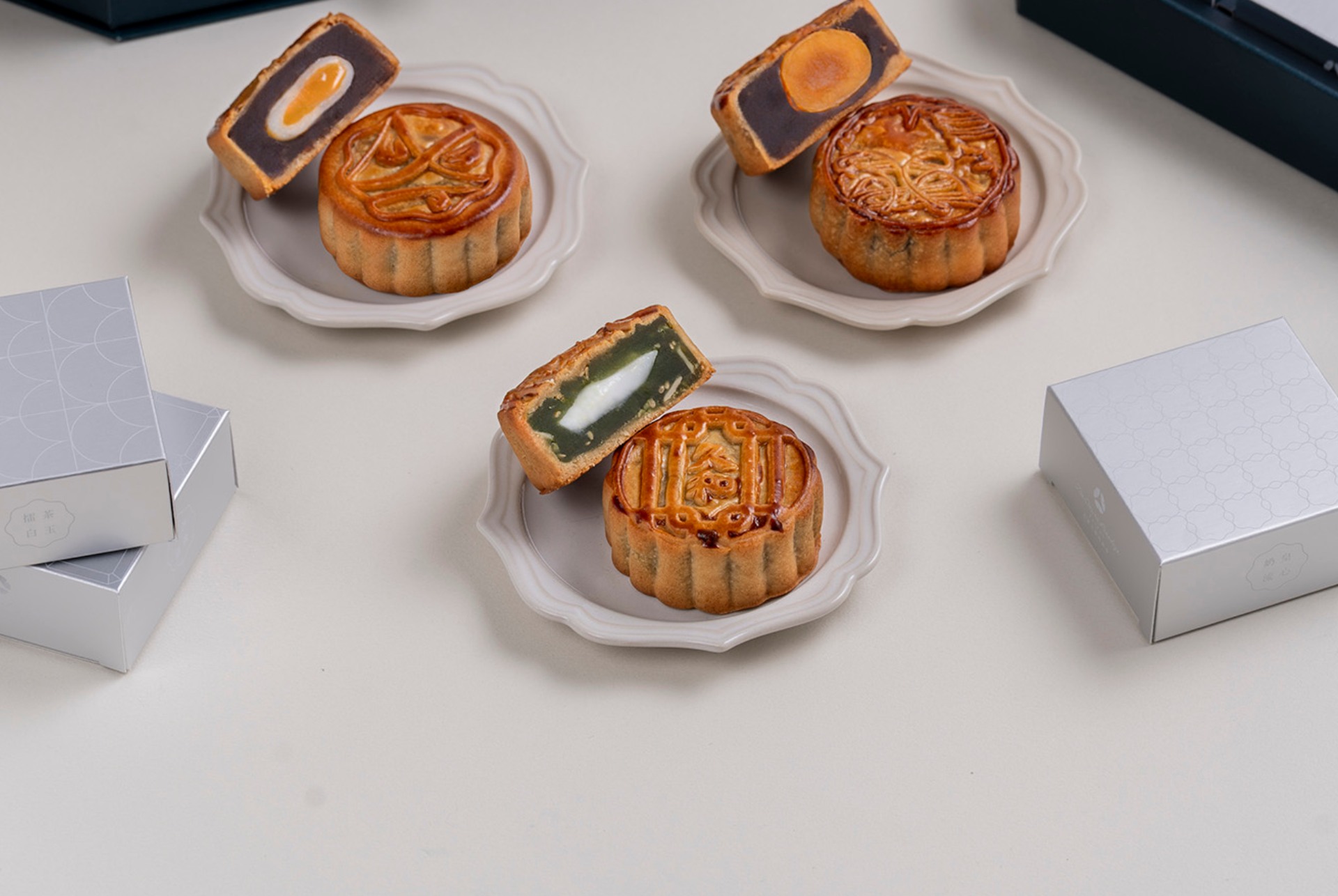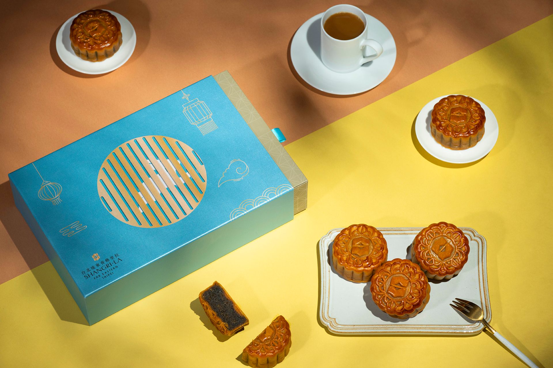 皮薄餡多、帶有精美花紋的廣式月餅是中秋最經典也最具人氣的代表。台北遠東香格里拉飯店便以此為主角,精選六種口味:從清雅的「蘋果桂花」、濃郁的「芝麻核桃」、溫潤的「紫米紅豆」,到經典的「蓮蓉蛋黃」,更有茶韻清香的「高山烏龍銀耳」創新口味,以及獨特果香與堅果層次的「紅酒無花果佐杏仁核桃」,全明星陣容帶來豐富的味蕾饗宴。外裝更以獨特的窗格藝術設計,只要輕輕抽拉,玉兔便會躍動起舞,搭配金黃線條圖騰,讓中秋月夜美景更添生動。