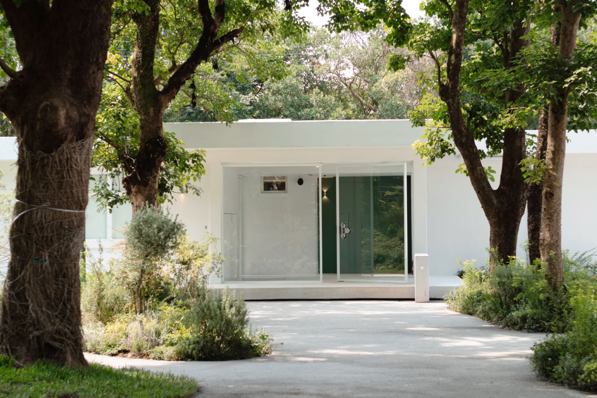 走進陽明山 YMS by onefifteen 的那一刻,乾淨俐落的五棟白色建築彷彿自帶濾鏡,錯落在一片靜謐又不失設計感的大花園裡,就像是穿越時空、誤闖進了 1950 年代的美國郊區。
