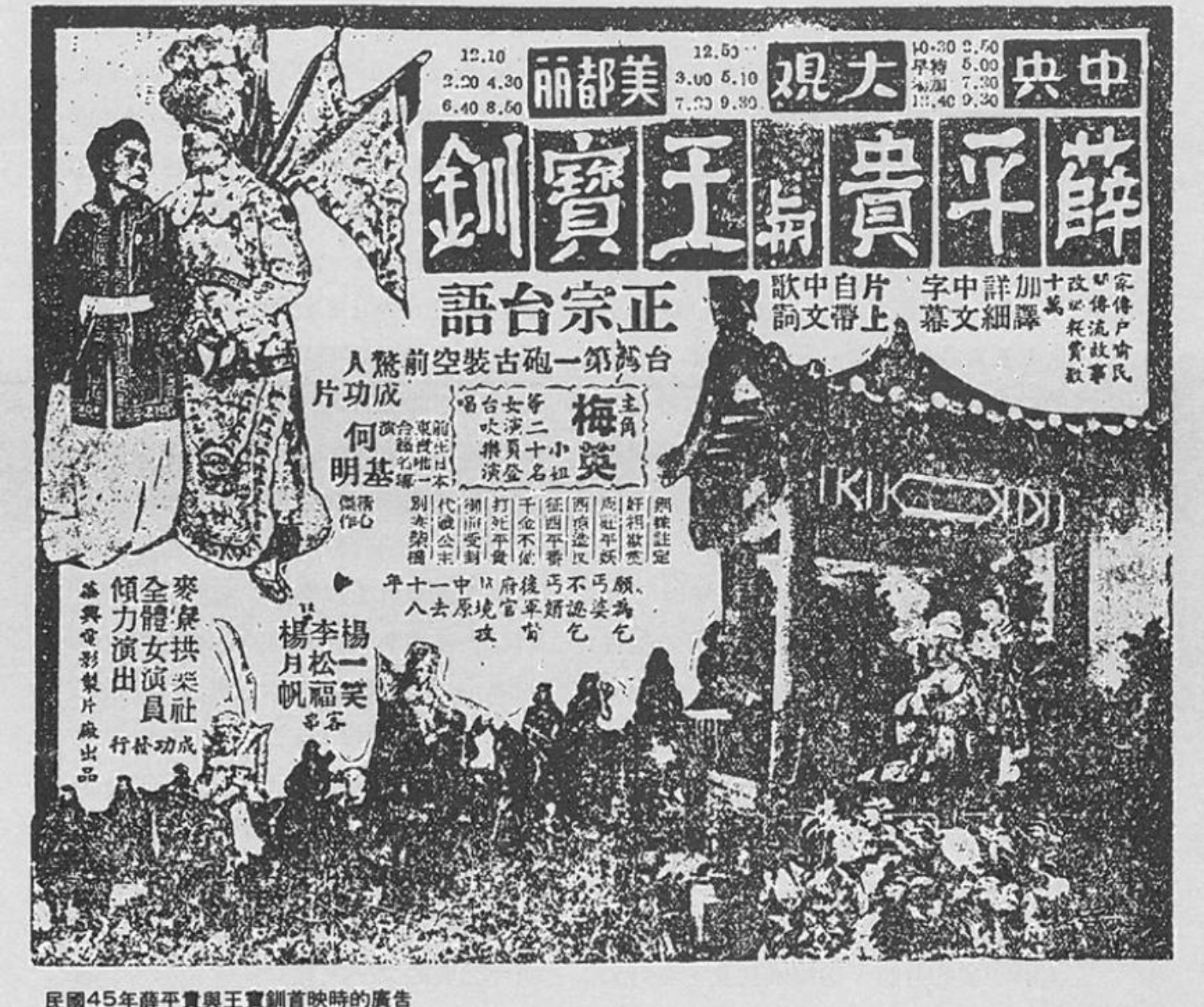 ↑《薛平貴與王寶釧》(1956)是由陳澄三先生所屬的「麥寮拱樂社」歌劇團擔綱演出的台語黑白有聲電影,更是第一部由台灣人自製的35釐米電影。