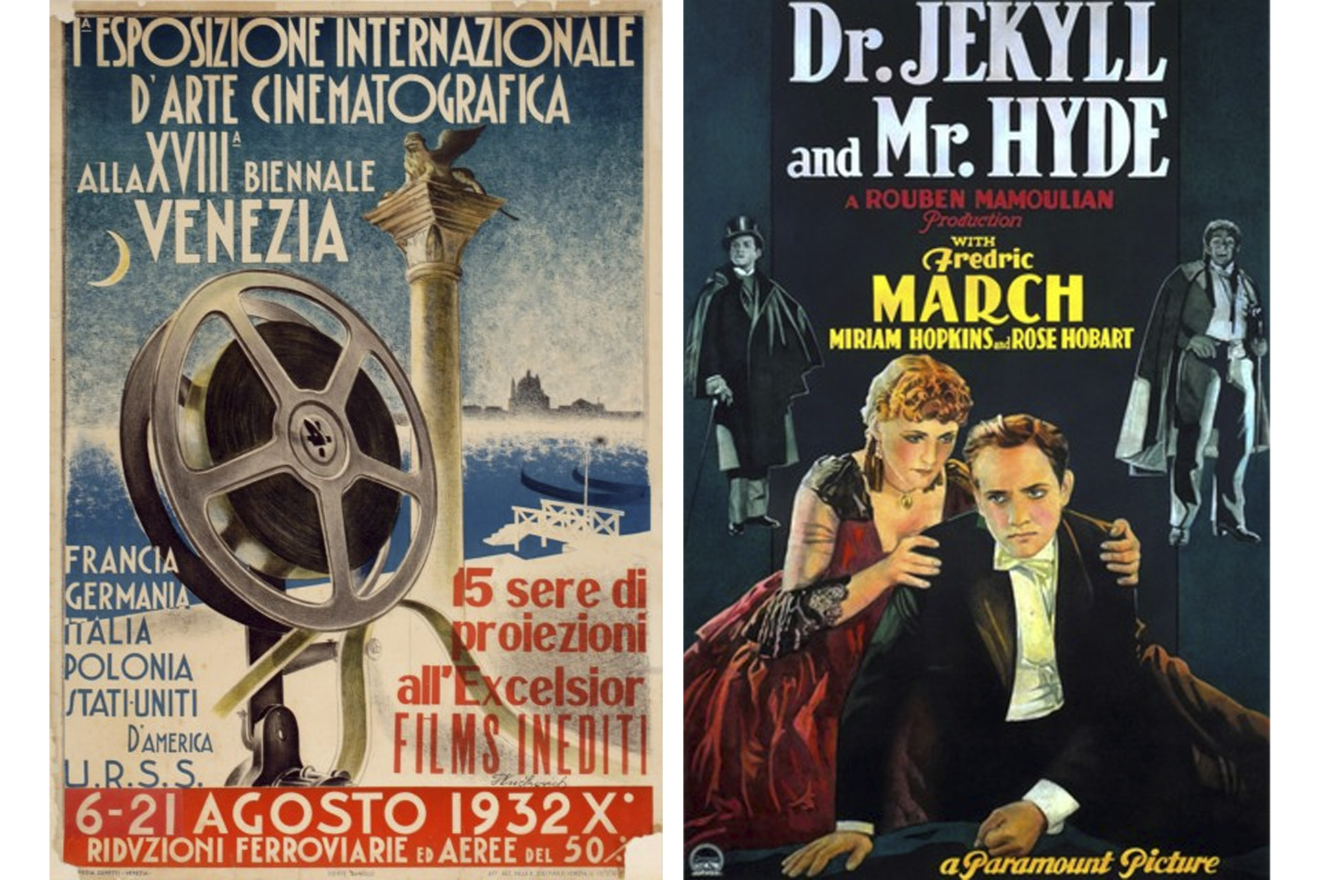 ⭡1932年首屆威尼斯影展誕生,左圖為首屆影展海報;右圖為影展首部播放電影《化身博士 Dr.Jekyll and Mr.Hyde》