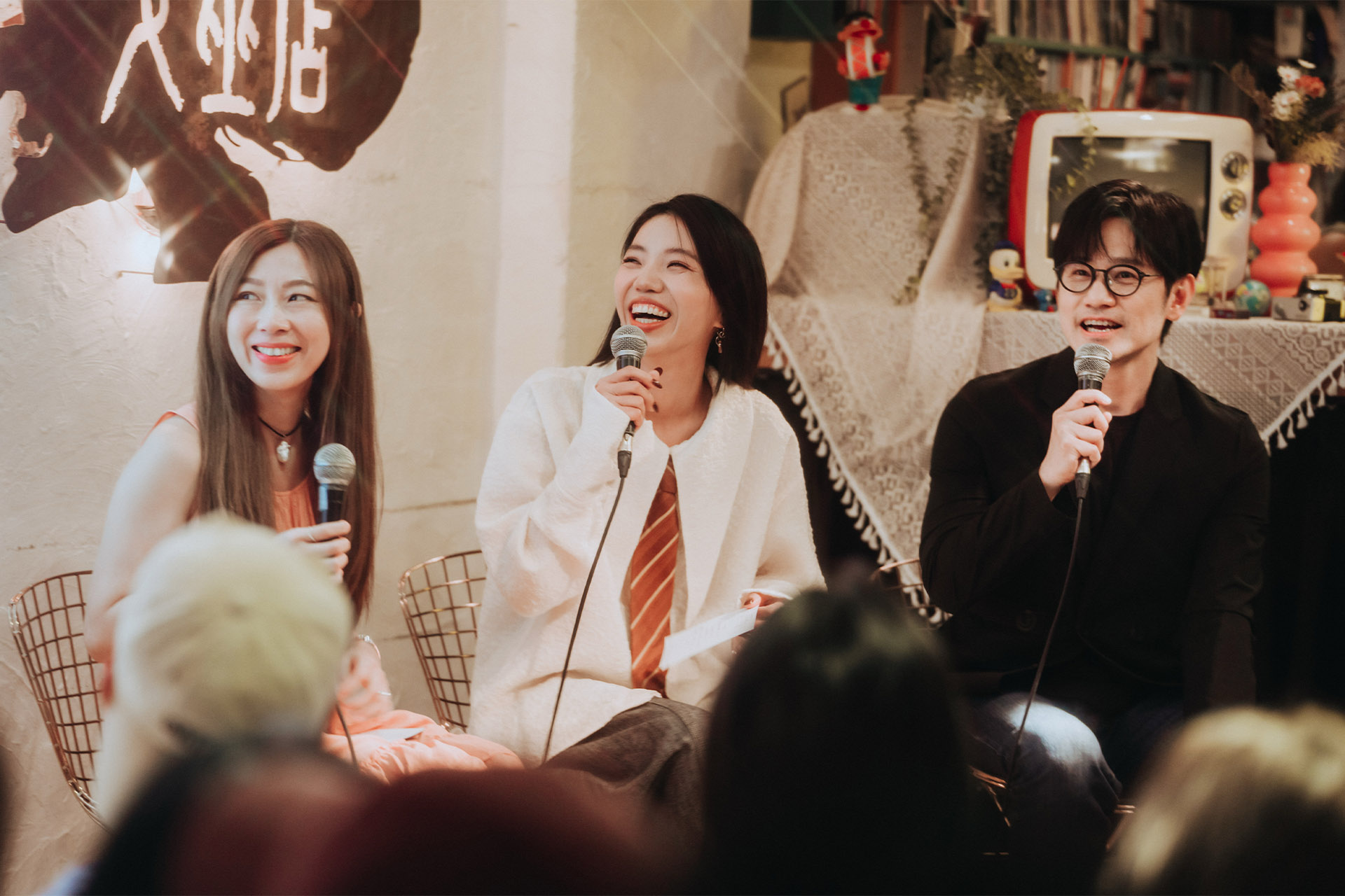 ↑在《開》專輯上線前一晚,洪佩瑜、王小苗、陳建騏等人在女巫店主持發行前祈福大會,邀請媒體和音樂人們齊聚一堂,搶先聽到專輯的全貌。