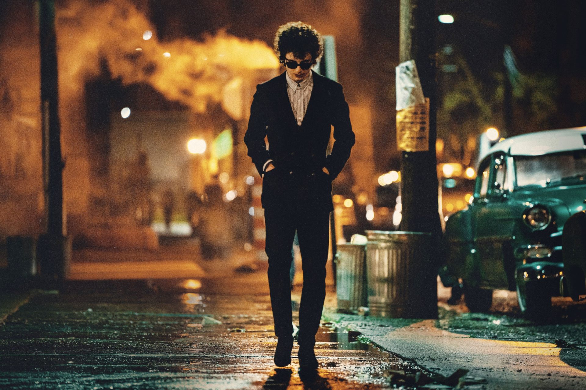 ↑「甜茶」提摩西夏勒梅 Timothée Chalamet 於劇中化身年輕時期的「搖滾教父」巴布狄倫 Bob Dylan