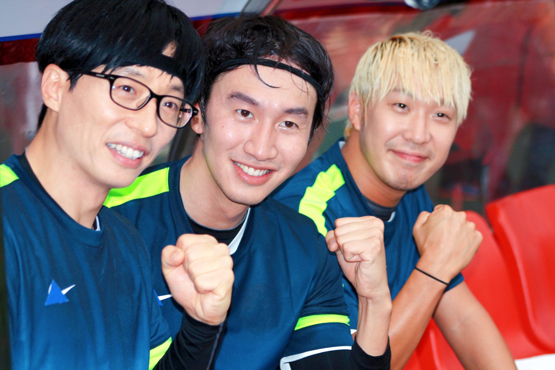 ⭡劉在錫(左)、河東勳(右)與《Running Man》昔日成員李光洙(中)
