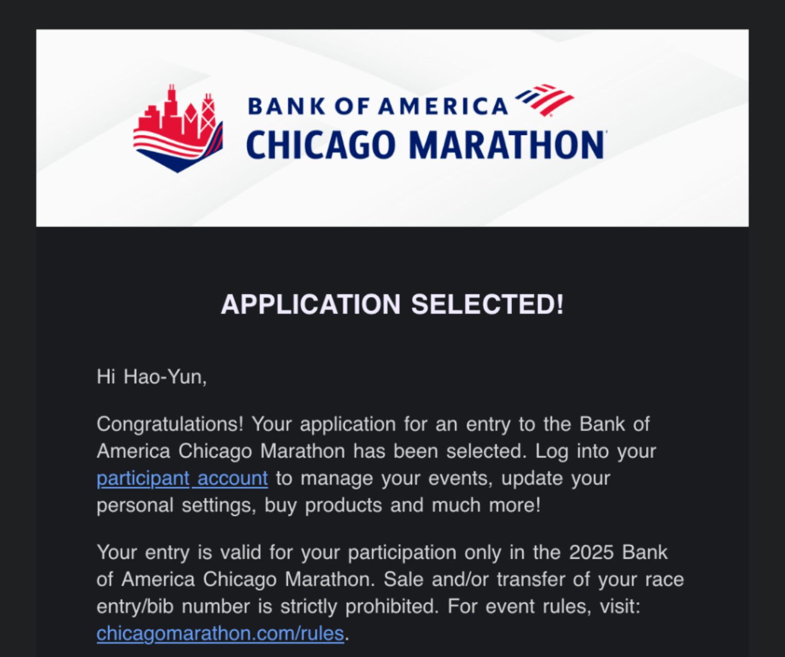 行李打包仍是零進度的我開始有點焦慮,回想這次芝加哥馬拉松的報名登記、中選,其實已經是去年的事了!不同標籤認證的馬拉松賽事,有著非凡的地位,跑者們趨之若鶩;而那些具指標性的人氣賽事,多半採登記抽籤制並付費報名,有著像是搶限量聯名商品般的難度。目前台灣共有兩場獲得世界田徑總會金標籤認證的賽事:台北馬拉松與新北市萬金石馬拉松。