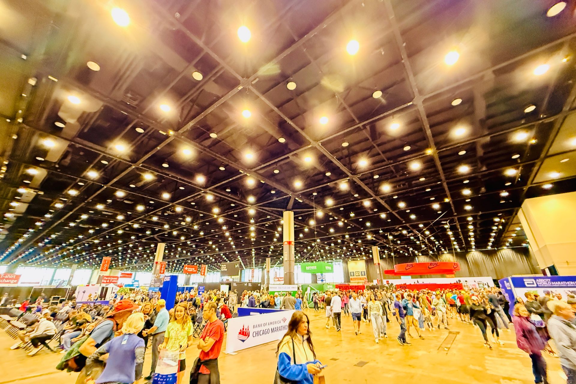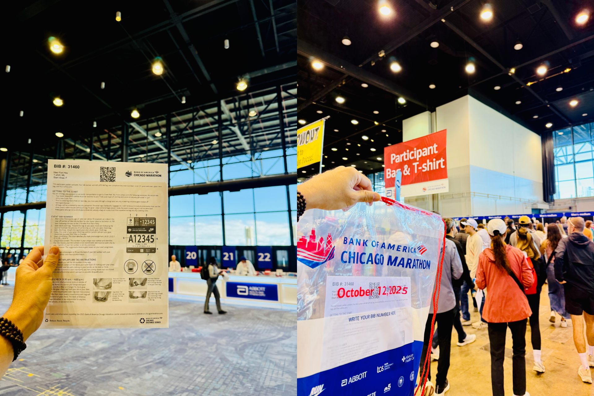 抵達芝加哥的第二天,我早起前往 Expo 領取物資。這天的天氣晴朗舒適,於是決定以散步的方式前往展覽館。途中經過比賽的集合場地,順道勘查一下當天的動線。在通過安檢後順利進入Expo會場,接著展開層層關卡:先憑報名QR Code領取號碼布與賽事規章,再進入場內兌換大會指定的寄物袋、服裝,以及各贊助商提供的小贈品。大會T恤則可在現場更換尺寸。