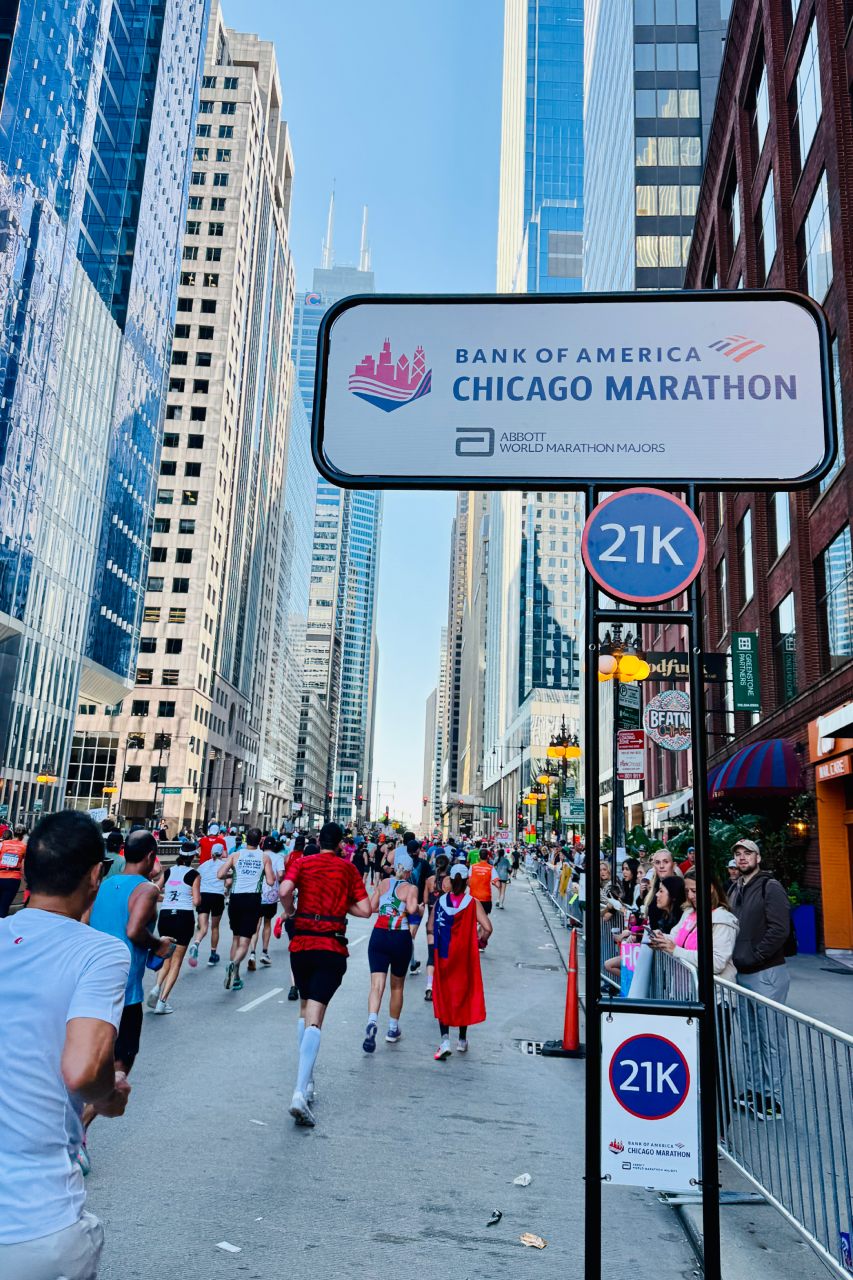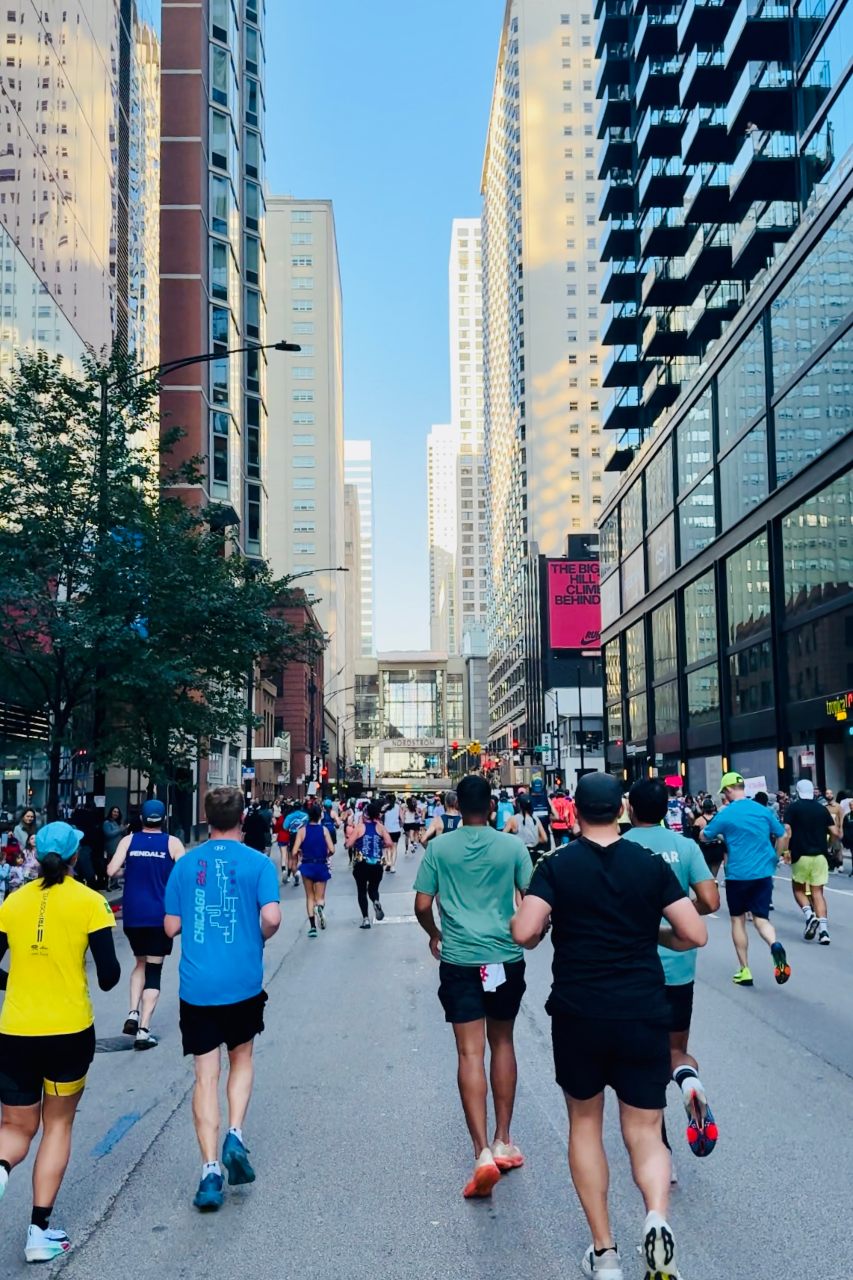 這天也是芝加哥馬拉松正式比賽的前一天,整座城市猶如化身成了一個超大型跑班;一旁有人在動態操,另一旁則有人在緩跑,轉角還能遇見剛跑完5K迷你馬(歡樂馬)的國際跑者。每個人神情堅定,用表情說著:「雖然我們配速不同,但目標一致,蓄勢待發,加油!」