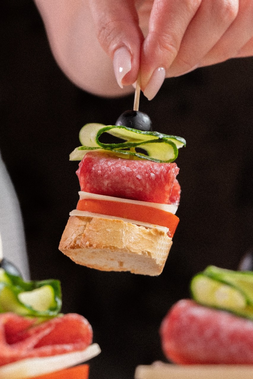 話說派對小食貴在精巧,但為了兼顧美觀、口味與多樣性,這些小食難免會被多元多樣的呈現,但紳士淑女們!如果要保持完美的形象,就要特別注意湯匙、竹籤和塔尖。通常會用湯匙和竹籤呈現的小點心,就是因為如果不藉由此舉輔助,食物本身極有可能會崩塌或癱軟(比方 mini 果凍或 mini 串燒),兩根手指徒手是無法拿取的,在拿取這類食物時,請想好,當嘴唇抿過湯匙時口紅會不會掉?食物吃完手上的湯匙該何去何從?竹籤是要橫向拔出還是縱向提起?如果你都想好了吃這些食物的步驟(或是今天的服裝很適合搭配手上的湯匙或竹籤)就放心拿吧哈哈哈。