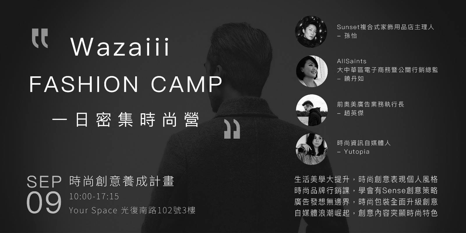 Wazaiii集結了時尚圈最具代表性的重量級講師,舉辦密集性的一日近距離講座,讓大家獲得如同打通任督二脈般脫胎換骨的時尚創意精彩體驗。