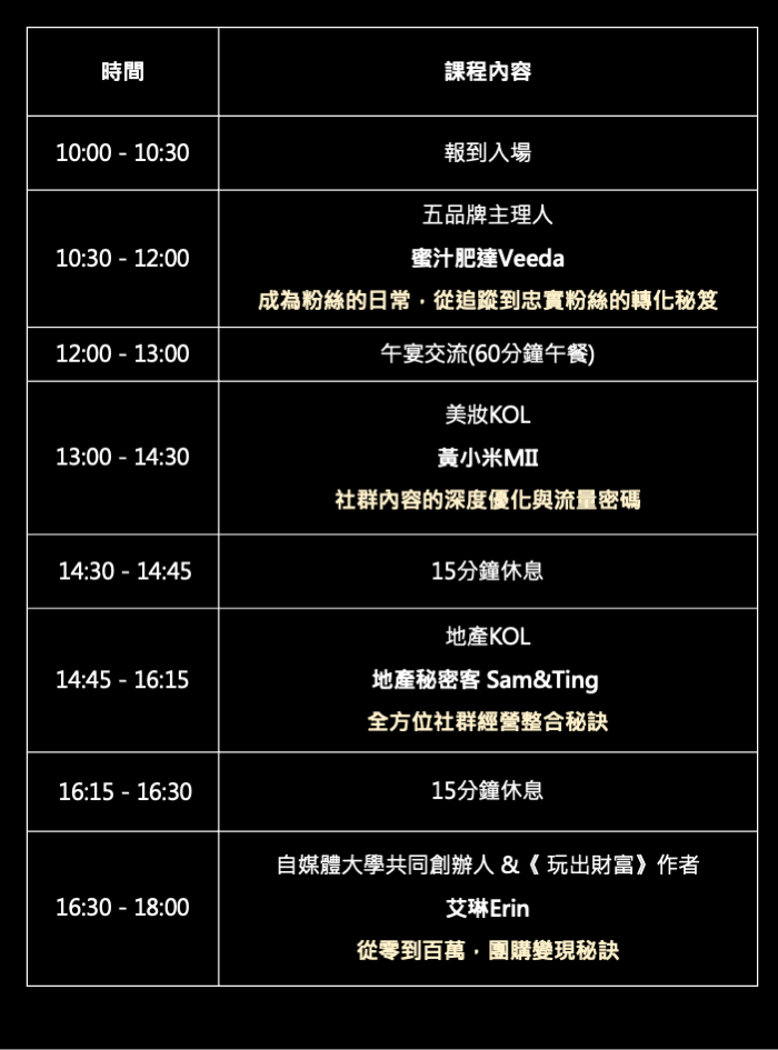 講師親授四堂課X四種自媒體成功訣竅X含金量商機無限