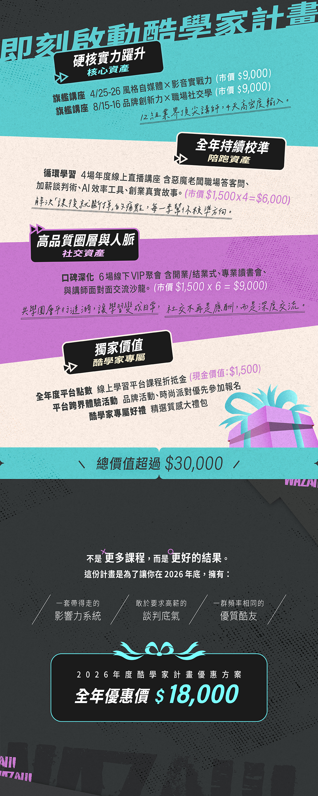 酷學家年度學習計畫,不只是一堂課,而是陪你一整年: